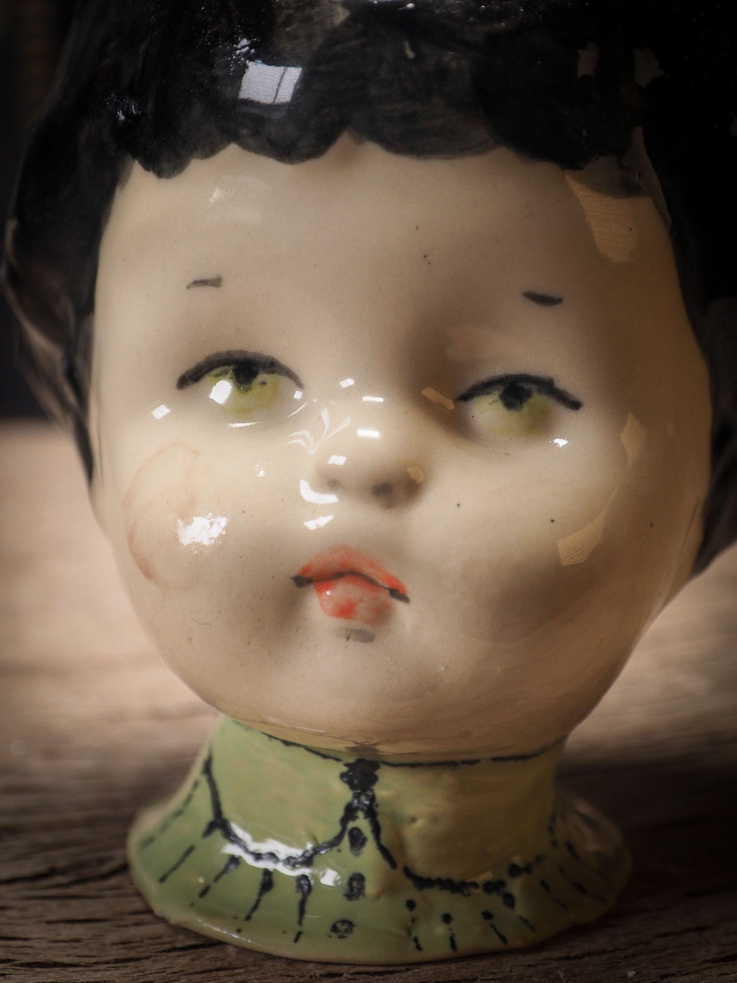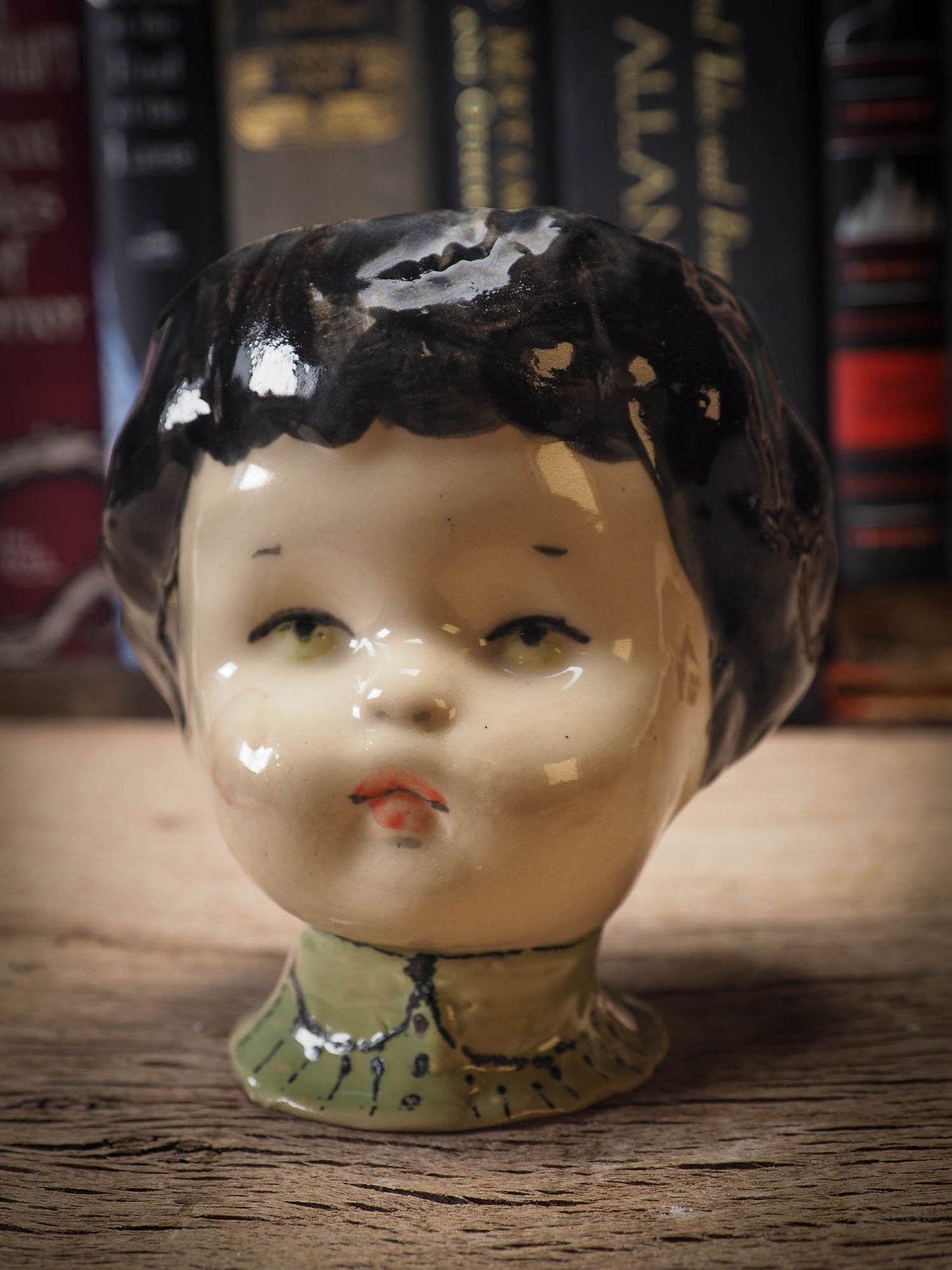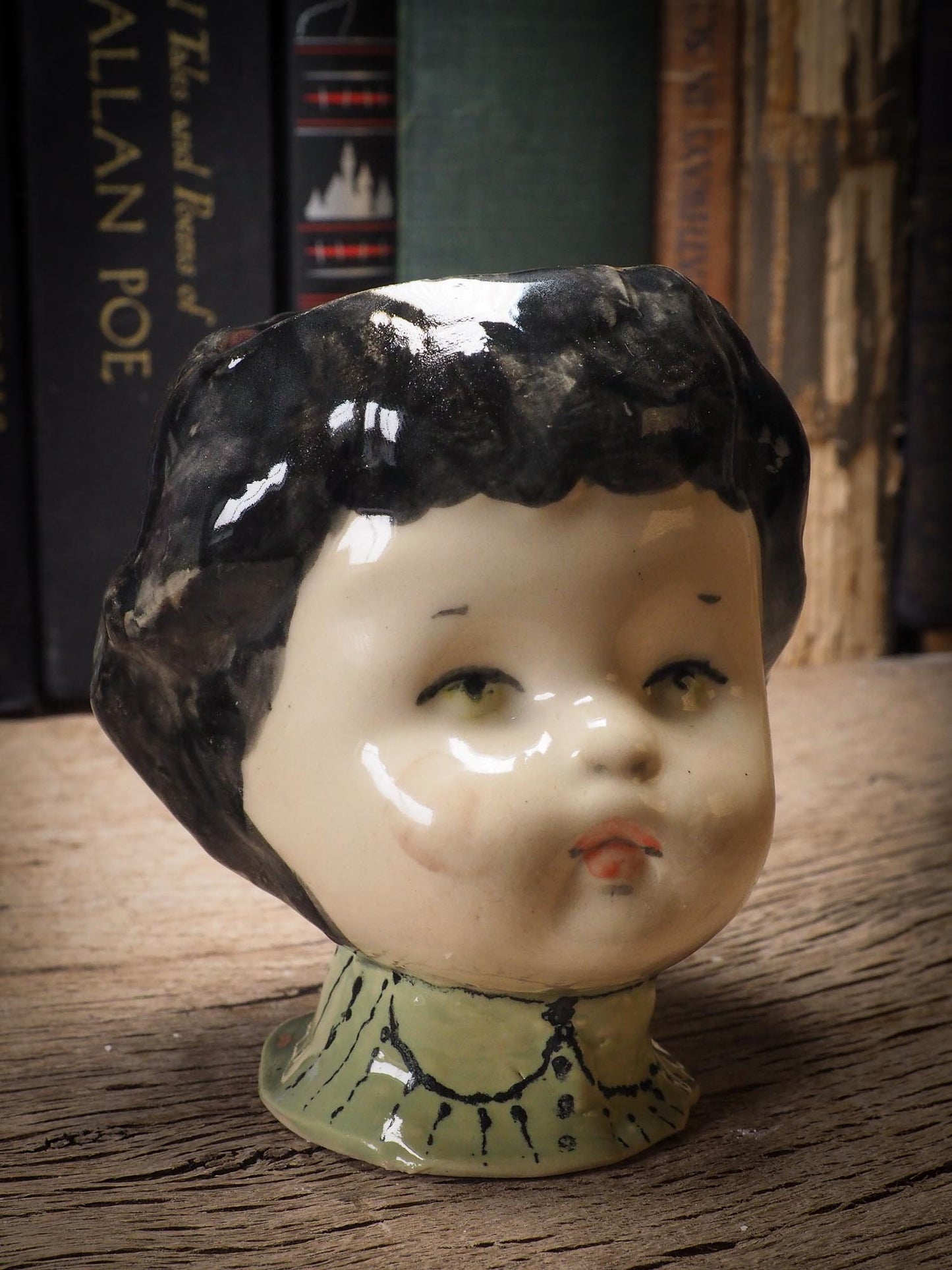 Her head acts as a stopper, in case you'd like to keep nice hidden little treasures inside her. I keep my wedding ring inside and other very dear and personal items inside one just like her on my bedroom.