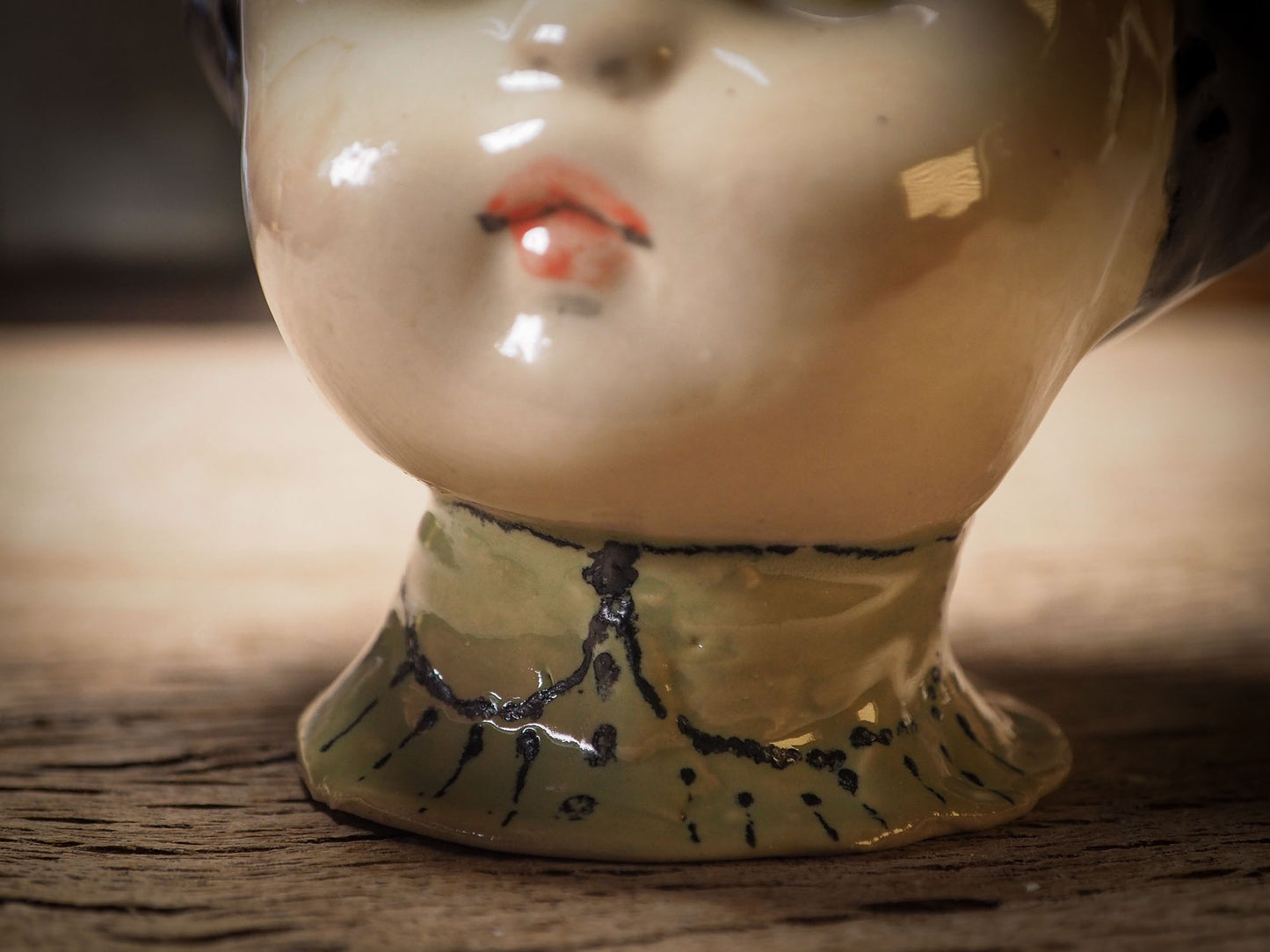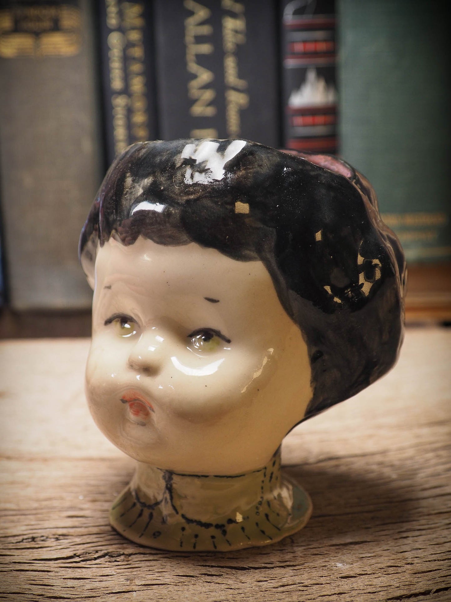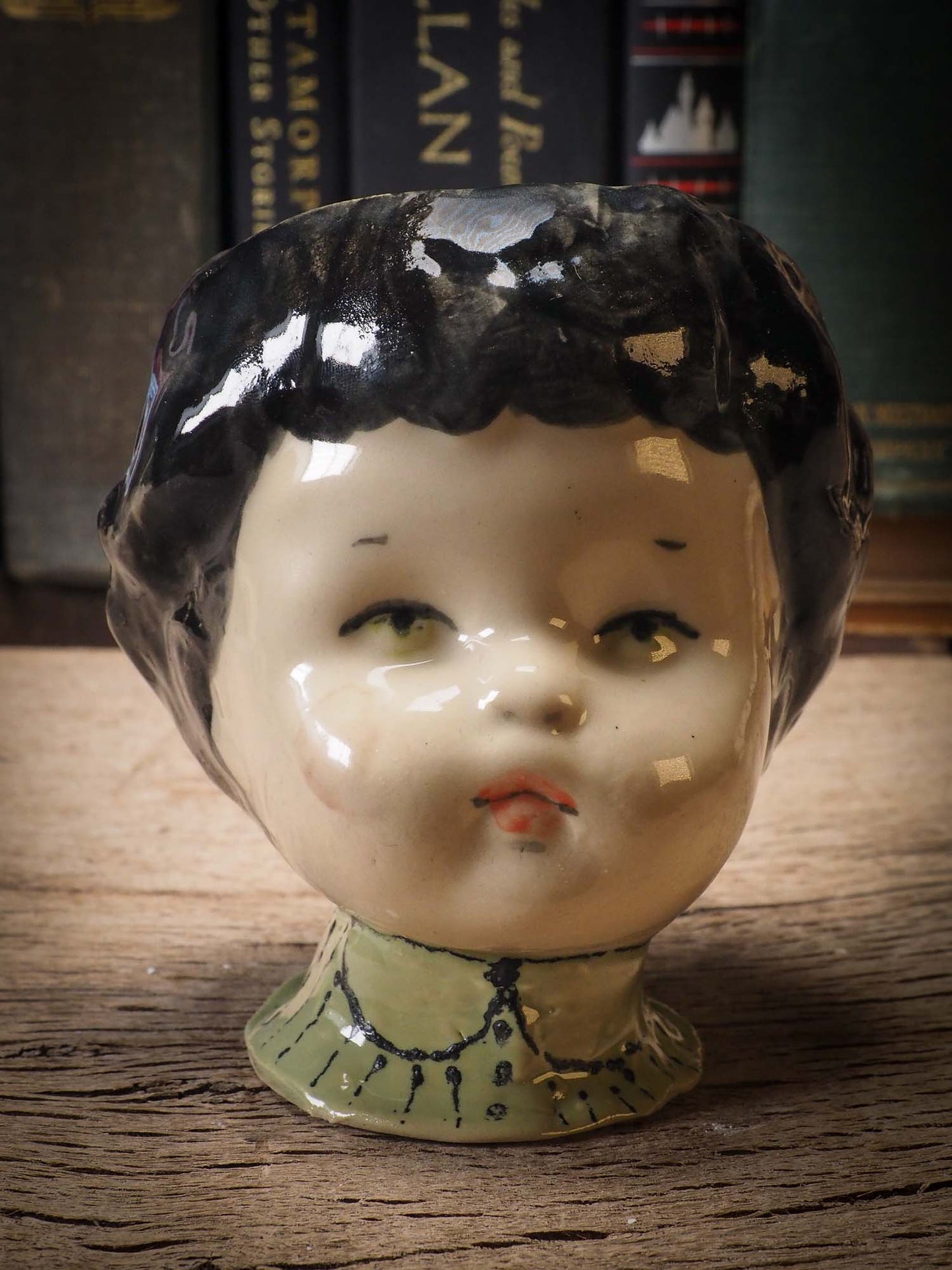Her head acts as a stopper, in case you'd like to keep nice hidden little treasures inside her. I keep my wedding ring inside and other very dear and personal items inside one just like her on my bedroom.