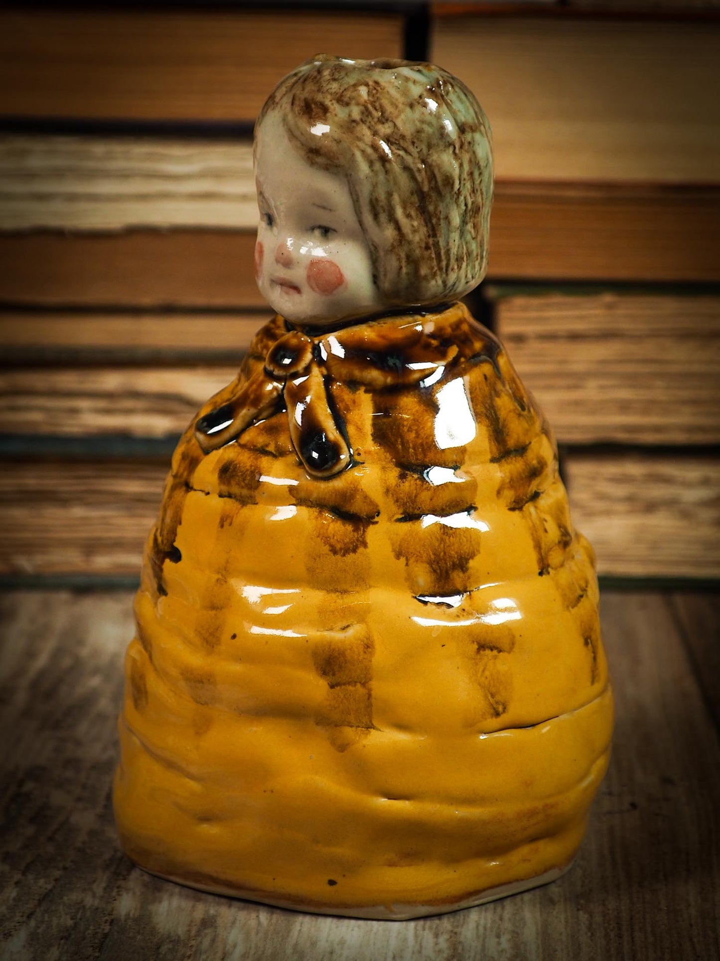 Her head acts as a stopper, in case you'd like to keep nice hidden little treasures inside her. I keep my wedding ring inside and other very dear and personal items inside one just like her on my bedroom.