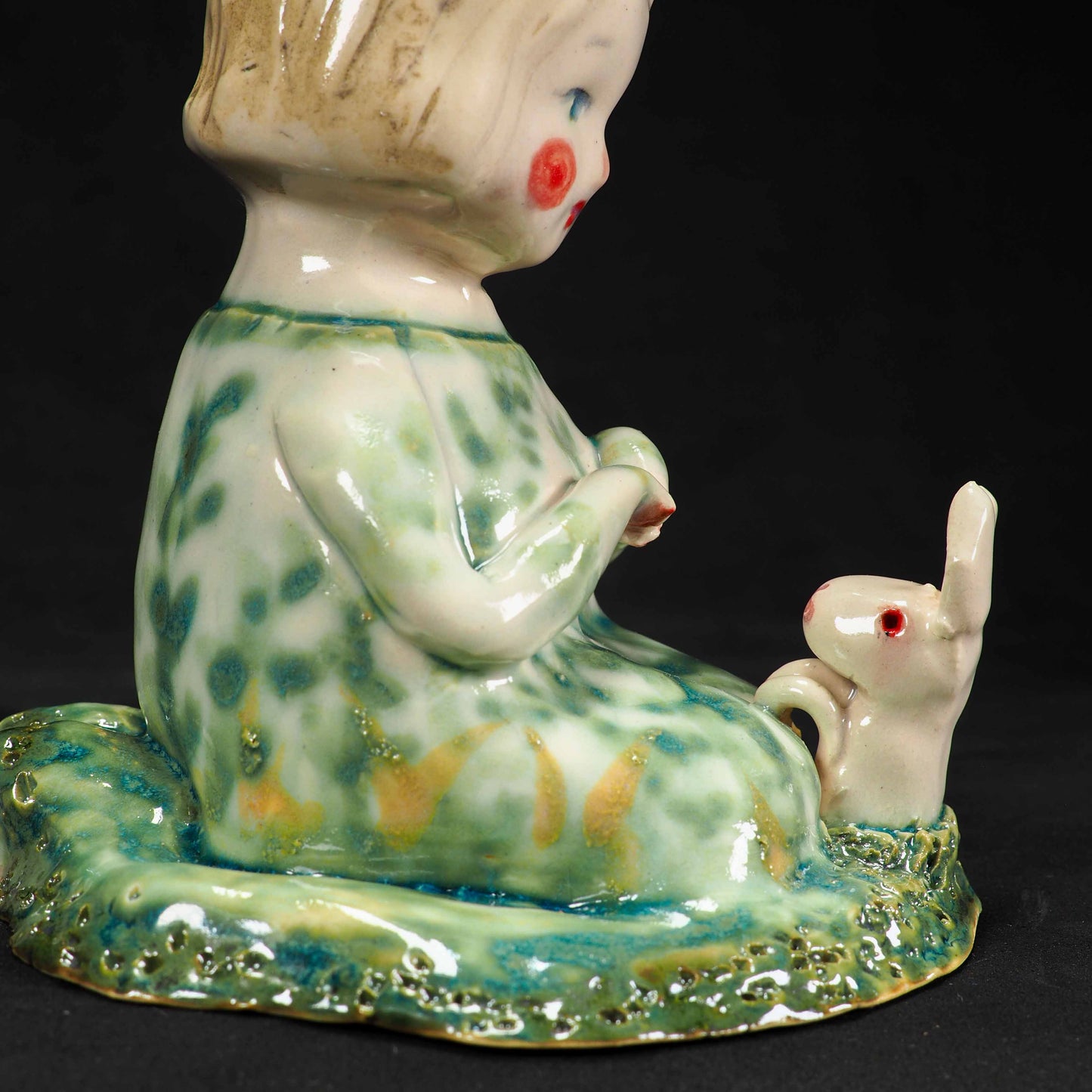 A little rabbit girl took a baby bunny under her wing. With boundless patience, she taught him the secrets of hopping gracefully, finding the sweetest clover, and listening for signs of danger. Together, they embrace the ancient wisdom of their kin.