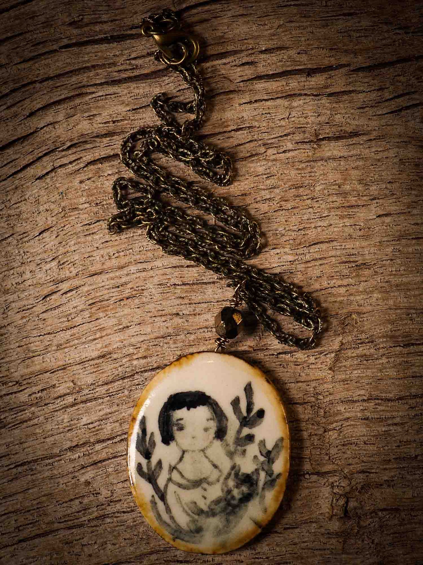 I had this feeling in mind when I sat down and created each one of the pendants on my ceramic jewelry collection. I want that when see it for the first time, you connect to a warm, special memory from your past… A special walk in the forest, the scent of a favorite meal, or a happy day spent with a loved one.