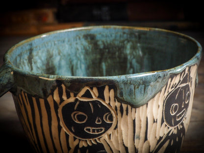 Perfect to enjoy your Halloween booty, or maybe a little ice cream and fruit and can be used as a pet cat bowl. My cats love theirs! It's 100% Food safe ceramic, hand wash only.