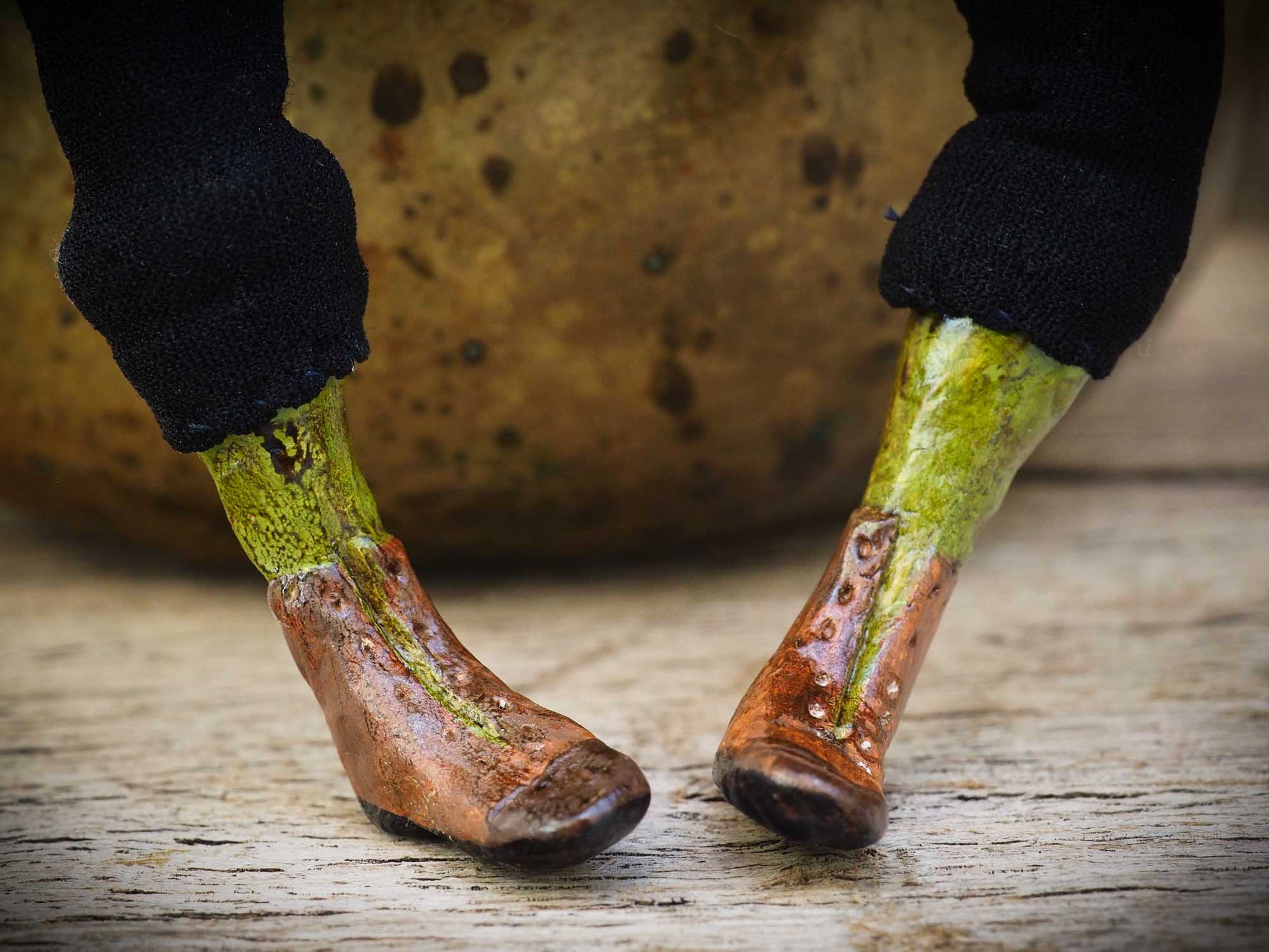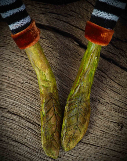 His hand and feet are made of sculpted green leaves with great attention to detail to make this a beautiful soft sculpture, perfect to decorate your table on Halloween night.