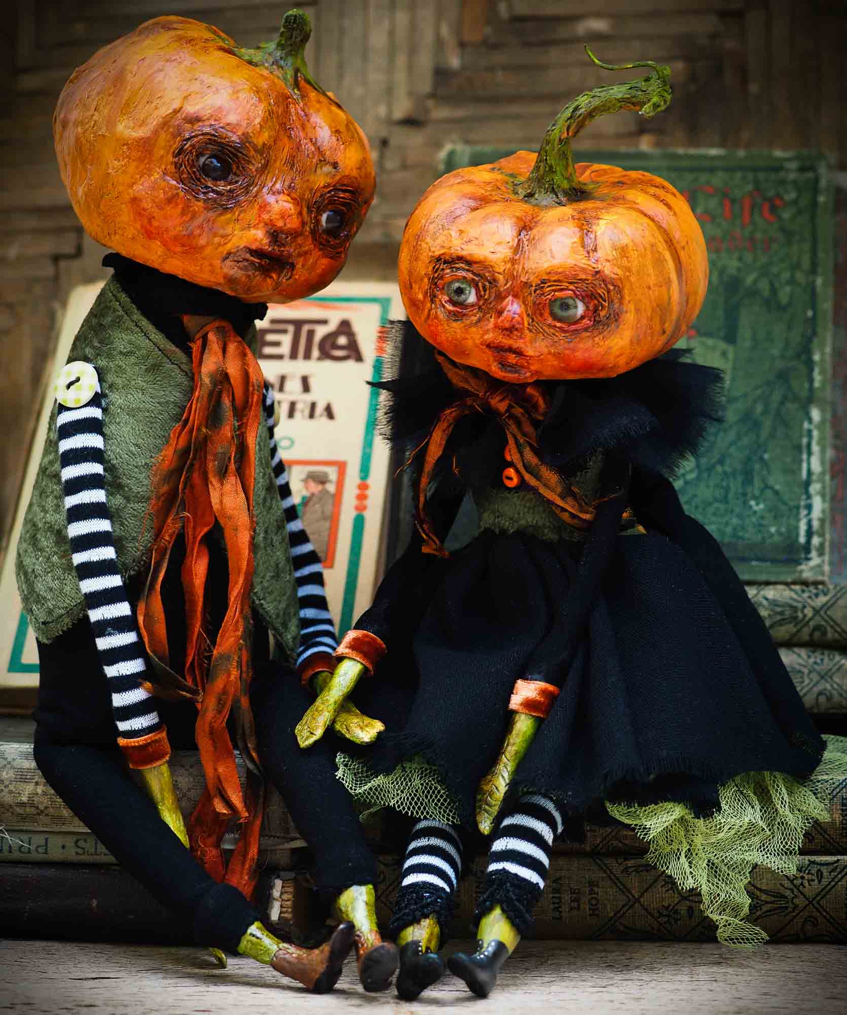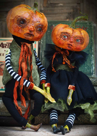 Carefully handmade with whimsical folk art roots, the spooky ghosts, witches, vampires, ghouls, and jack-o-lantern art dolls, toys and home decorations of Danita are full of Halloween mystery and lore.