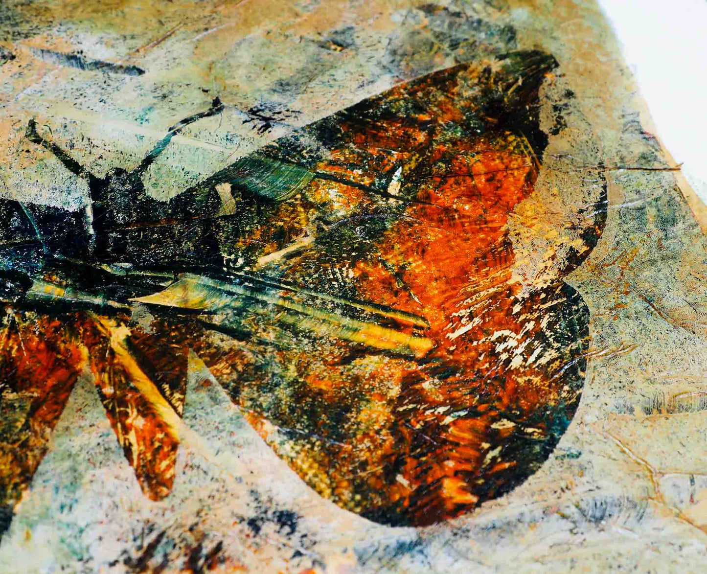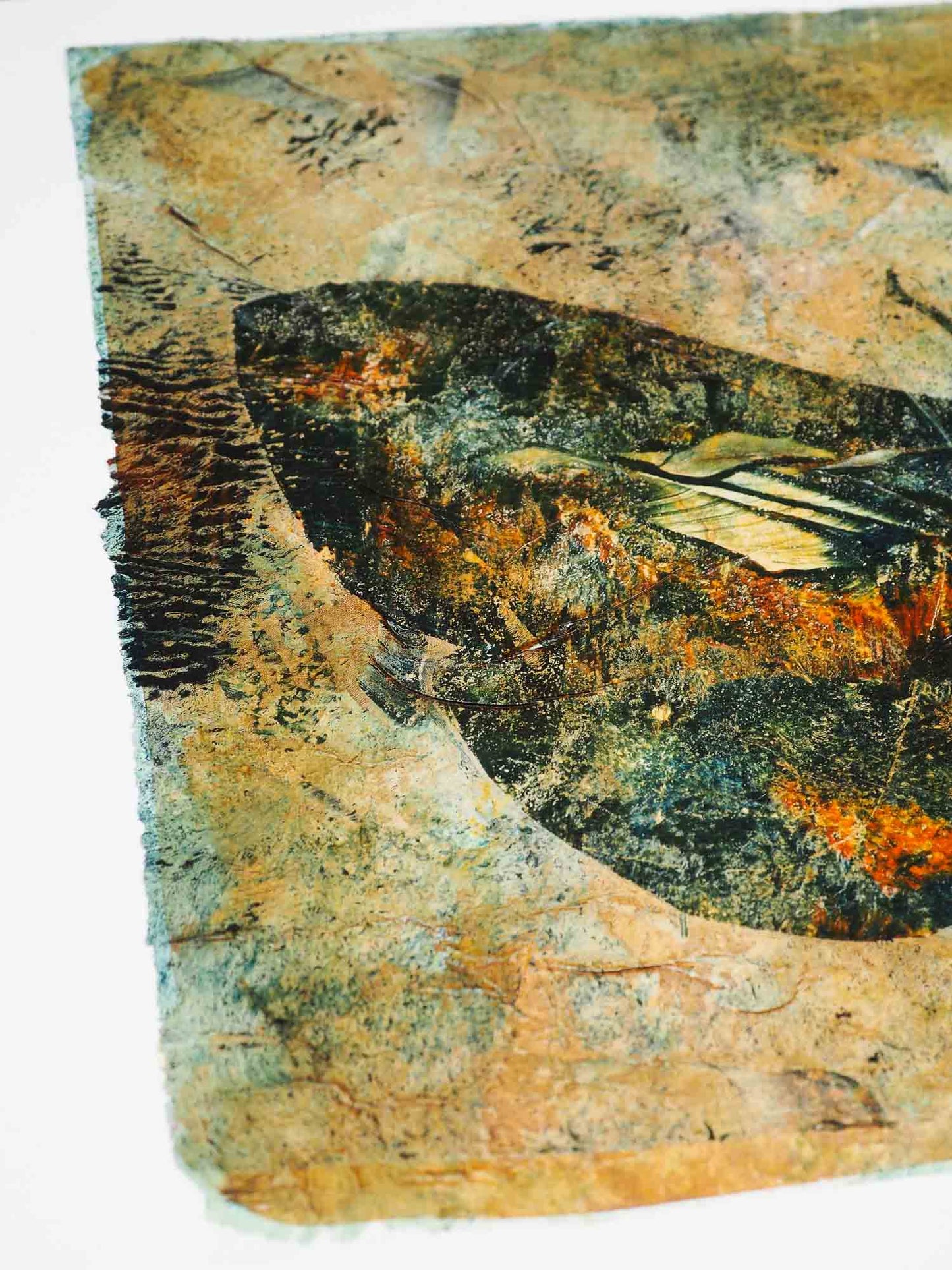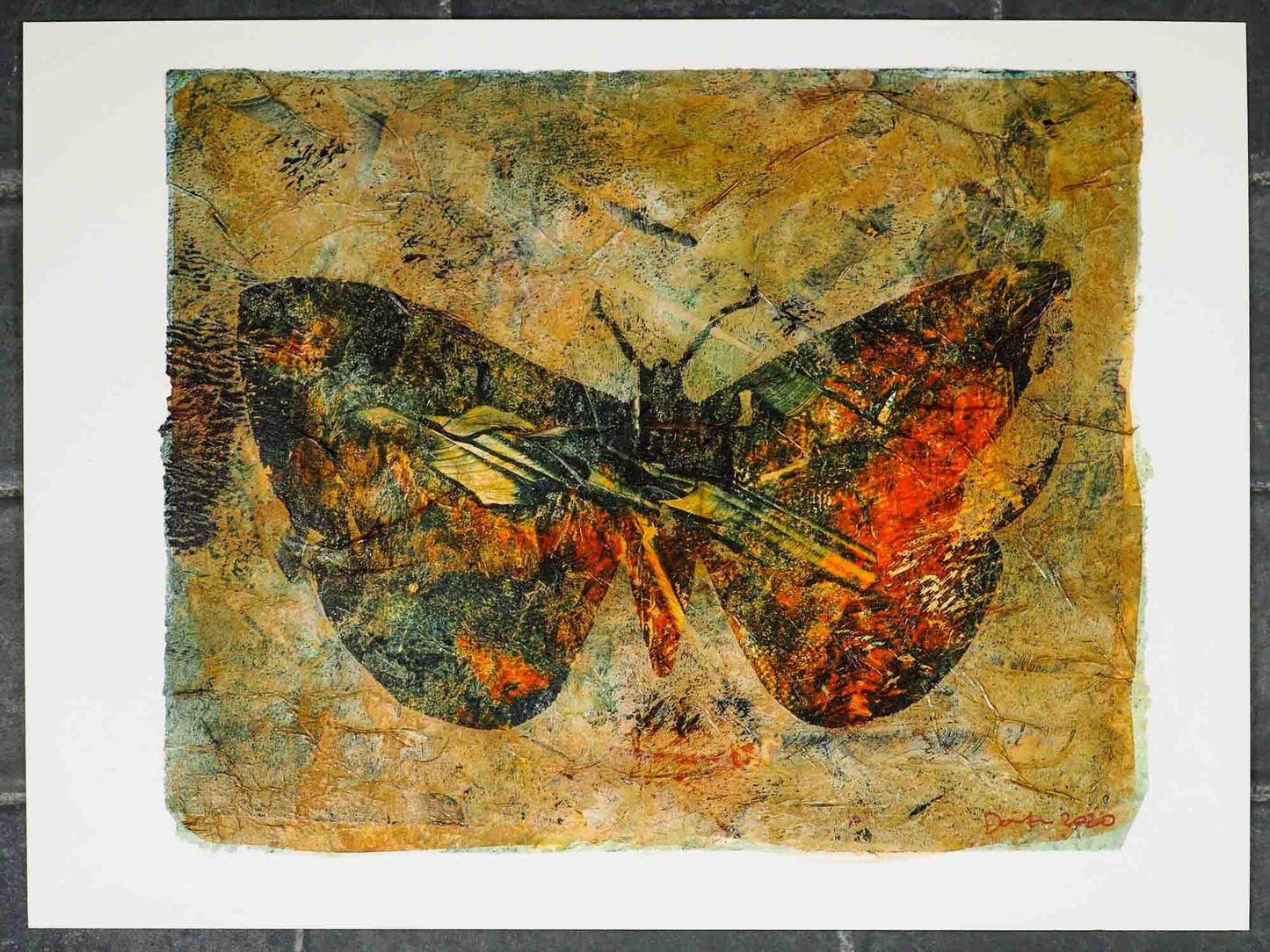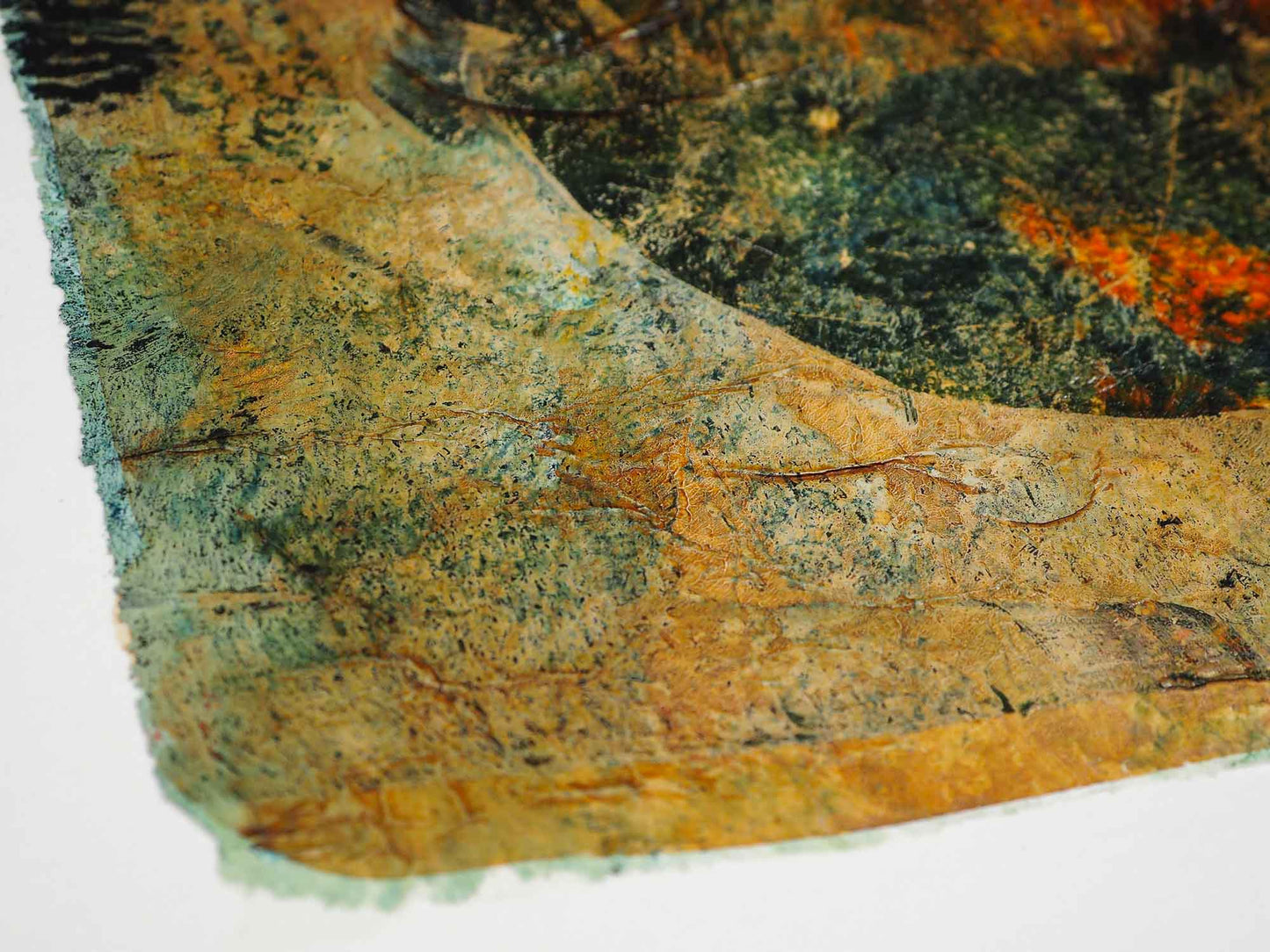 This beautiful monoprint measures 8x10 inches on a 9x12 paper, and it is ready to frame.