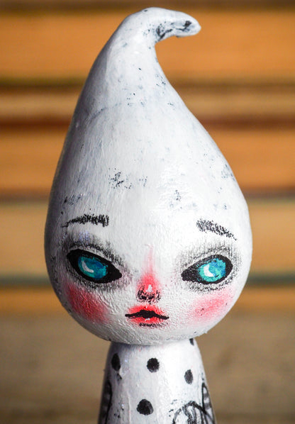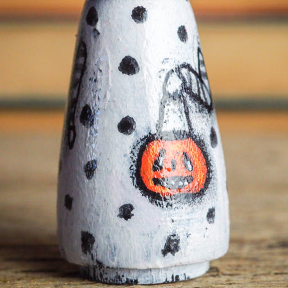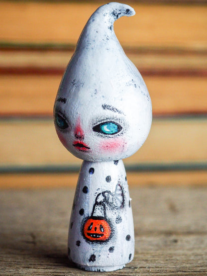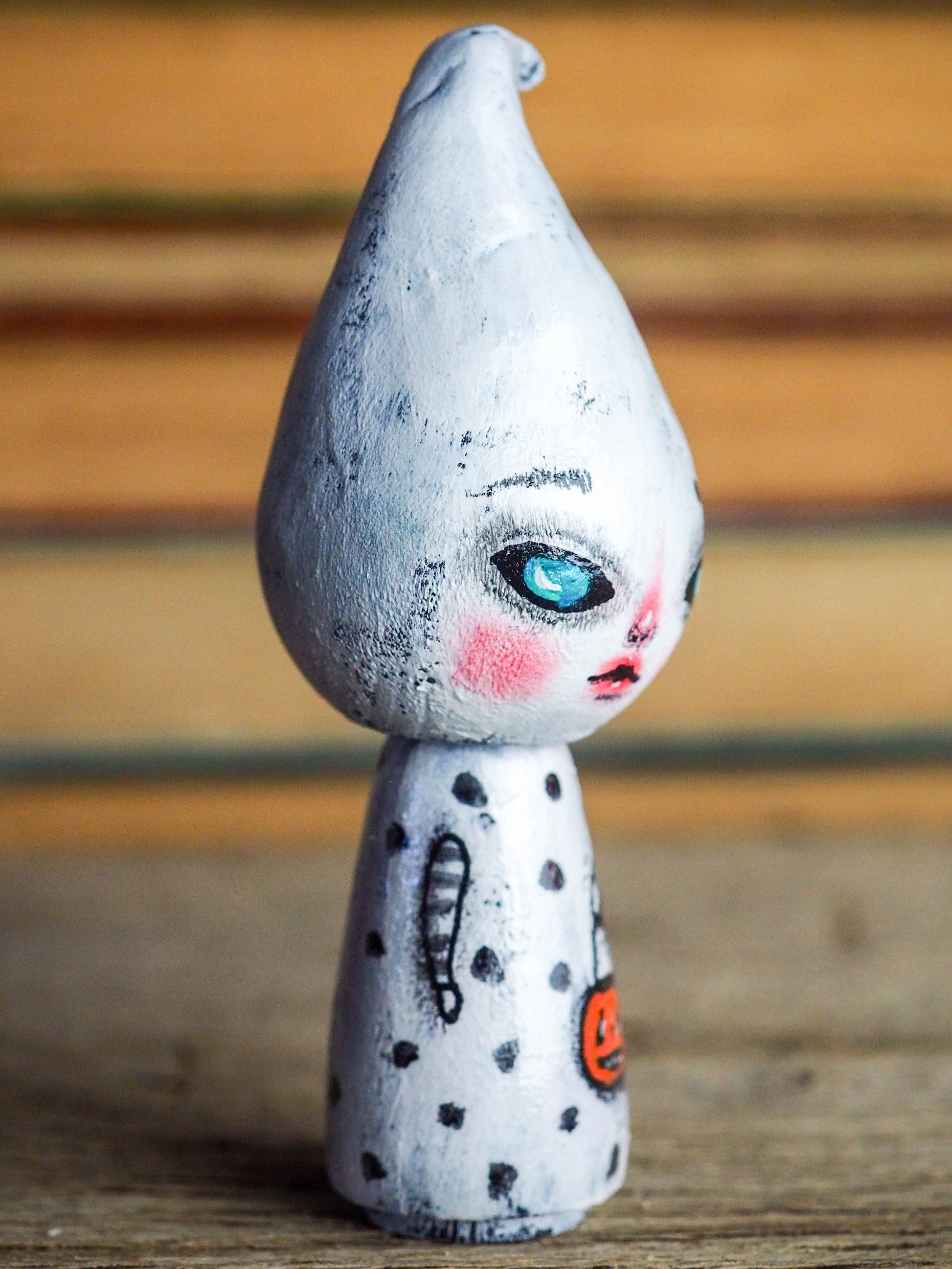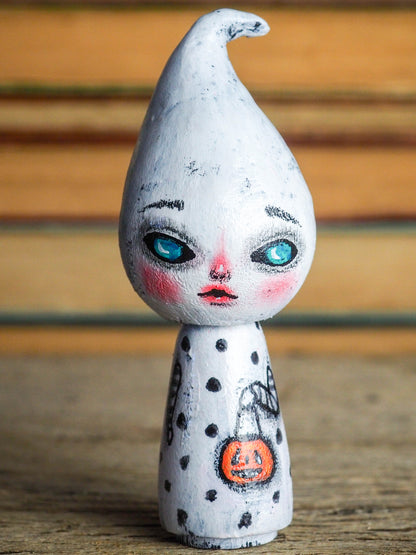 KAREN THE GHOST - Original hand made Kokeshi wood peg Halloween art minifig doll by Danita