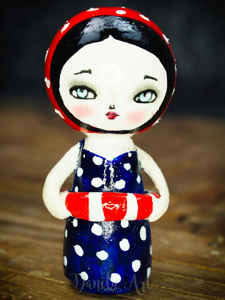 This year's summer Kokeshi line has super cute little girls with Victorian style bathing suites and striped floaters.