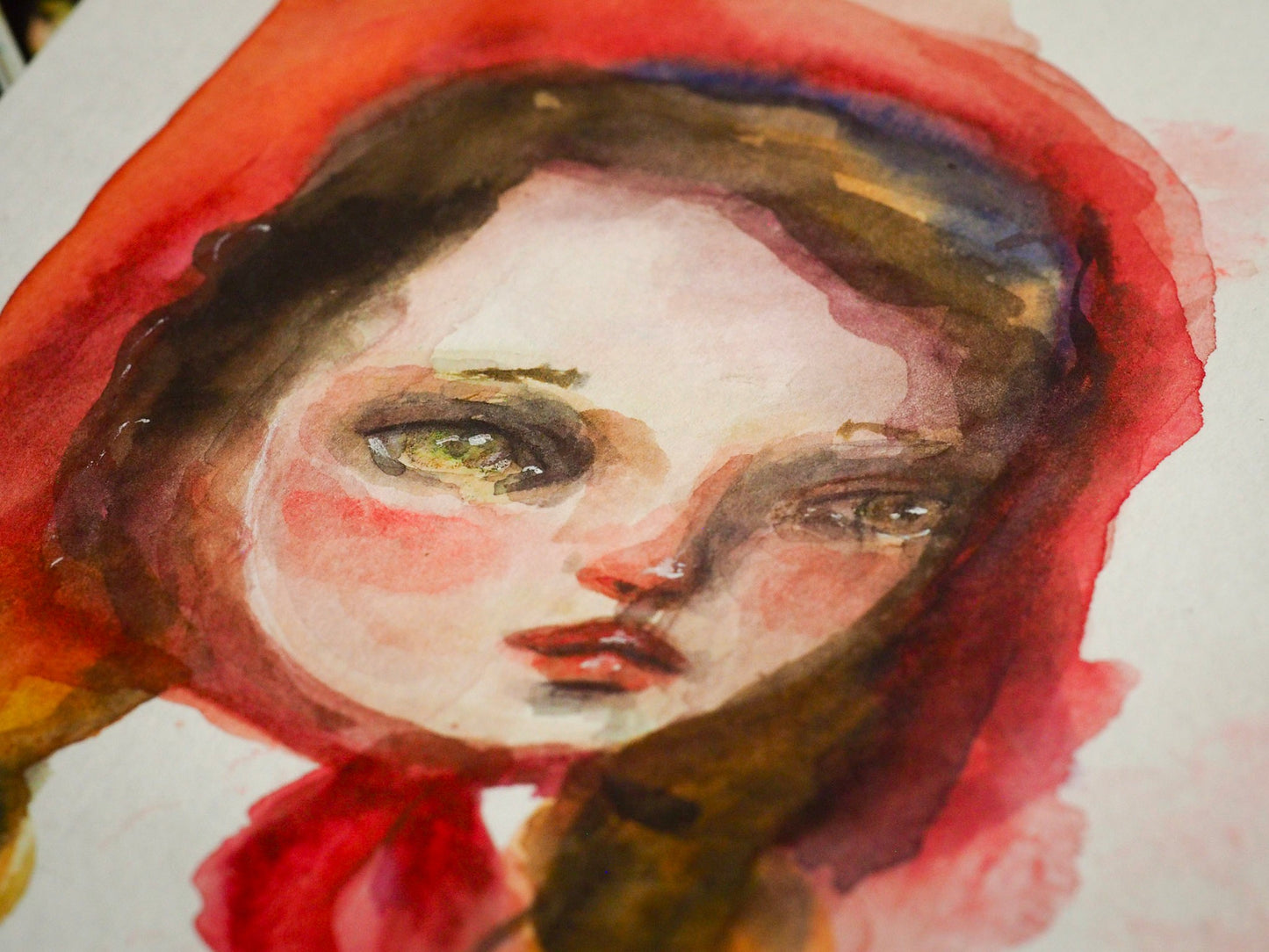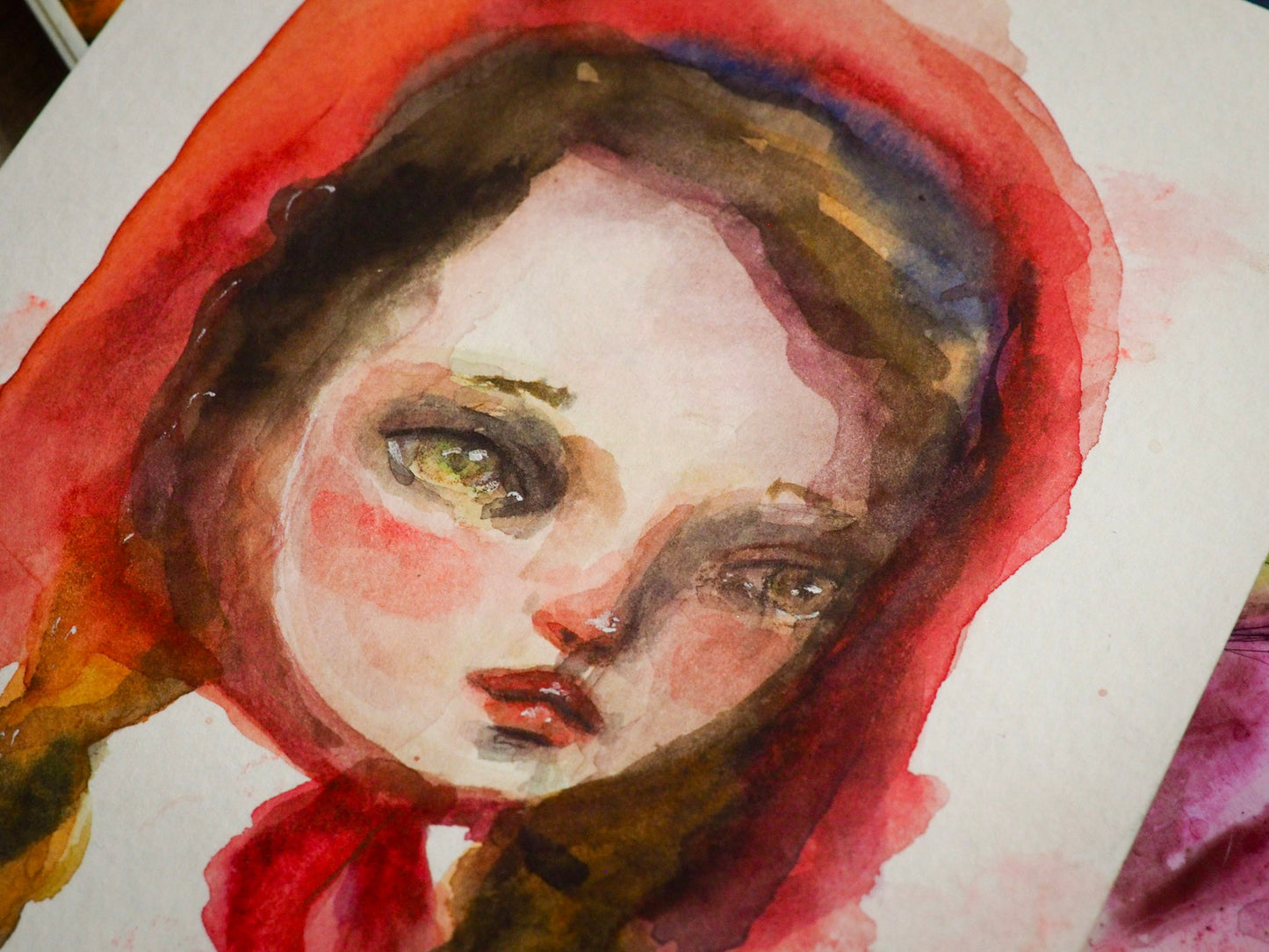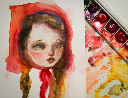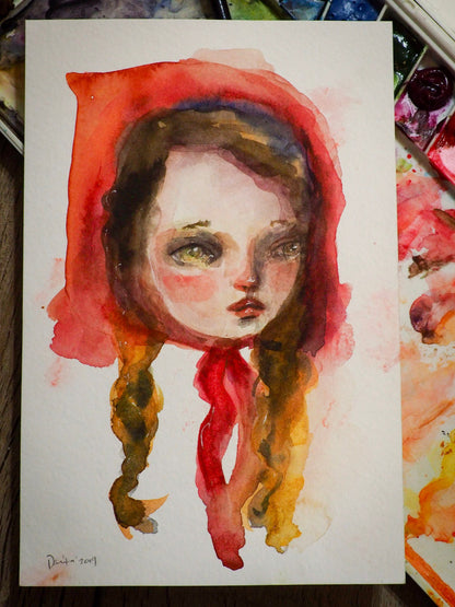 LITTLE RED RIDING HOOD - Watercolor painting on paper by Danita Art
