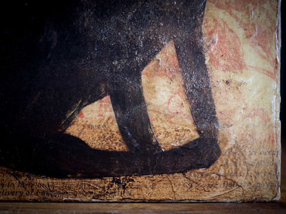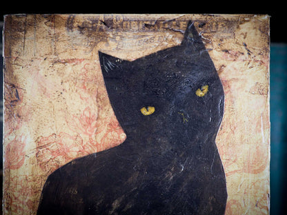 Created using paper collage techniques, combined with an alchemy of materials like acrylics, pastels, oil paint and many other materials over a wood panel in gallery style, with sides decorated with collage paper. Ready to hang on your favorite wall!