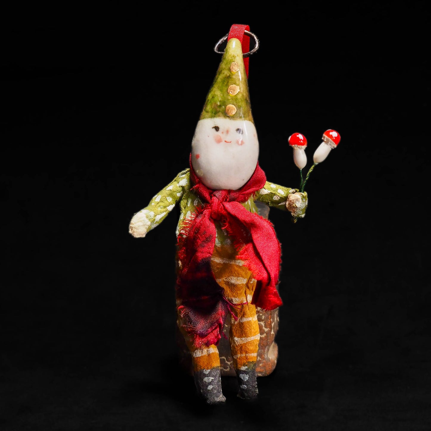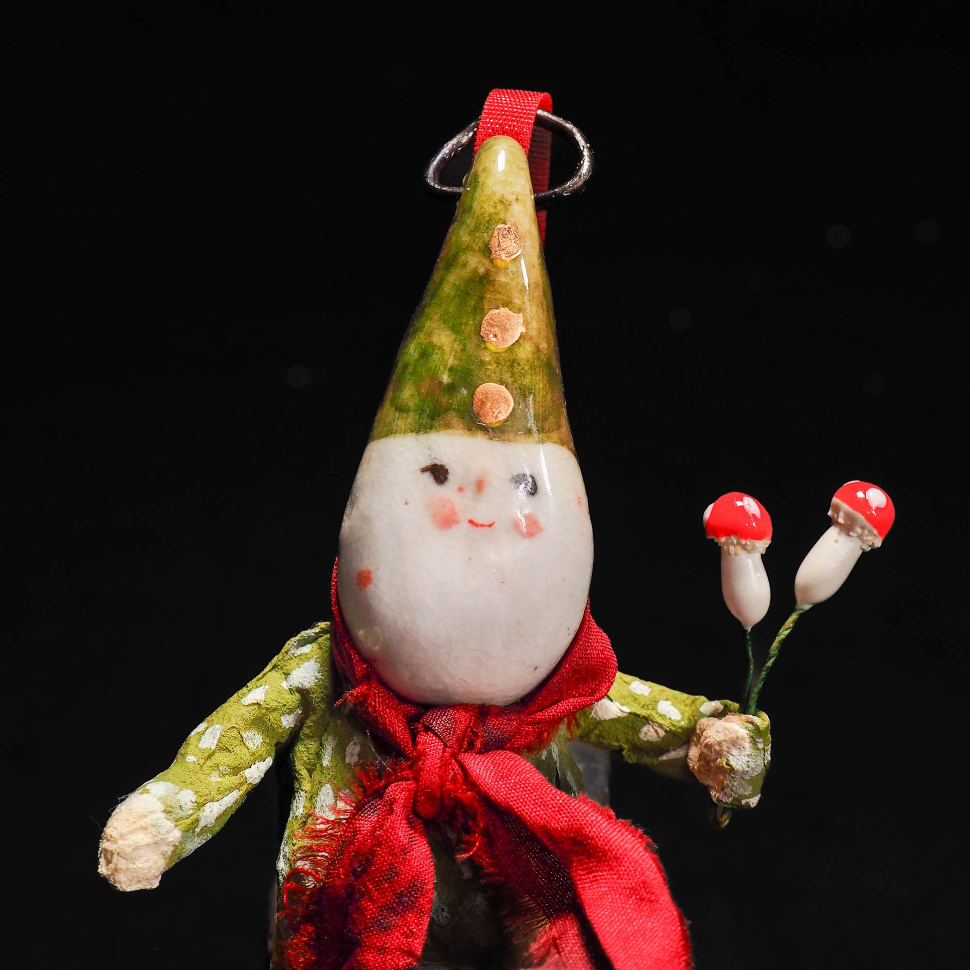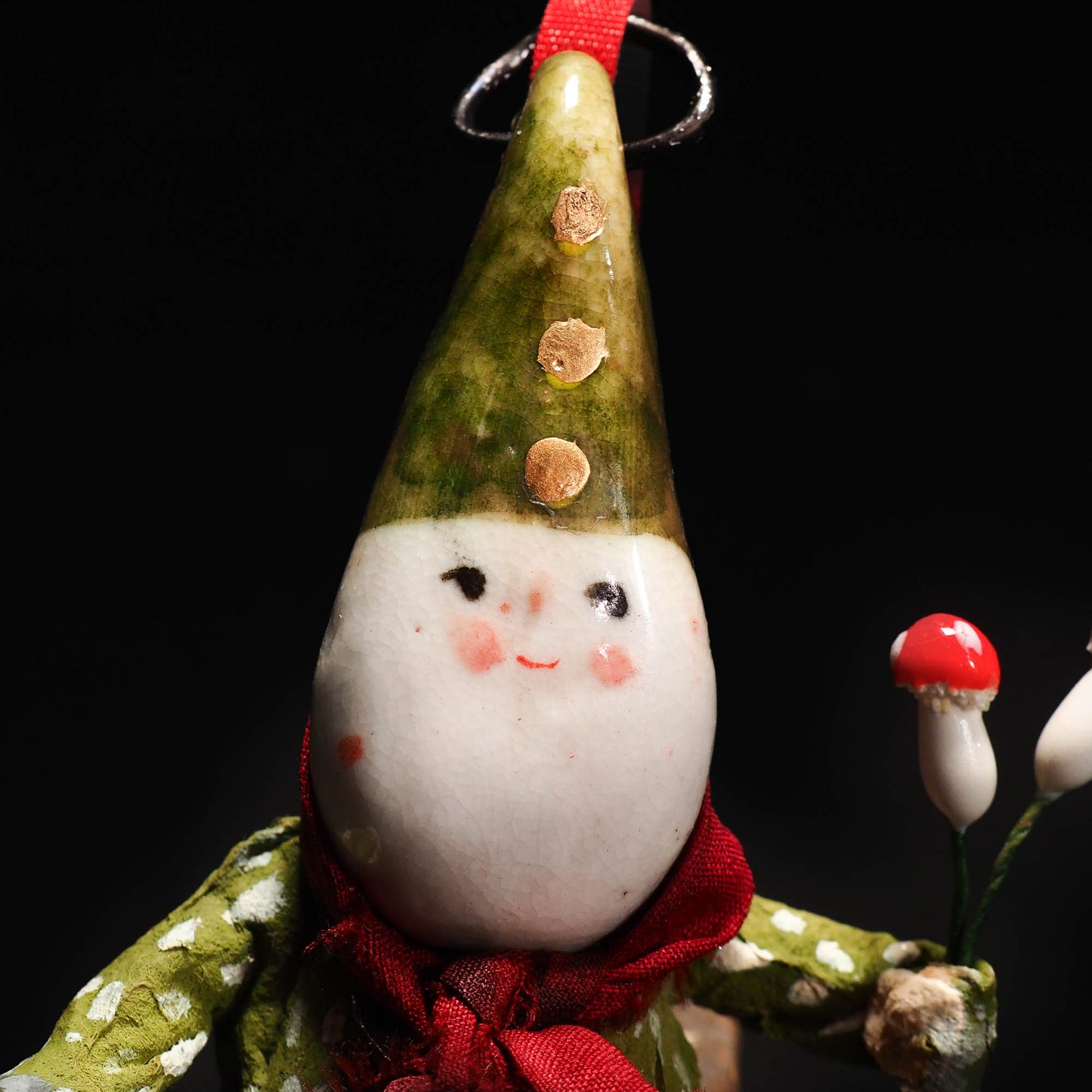 This is an adorable spun cotton and porcelain handmade Christmas tree ornament by Idania Salcido, the artist behind Danita Art.