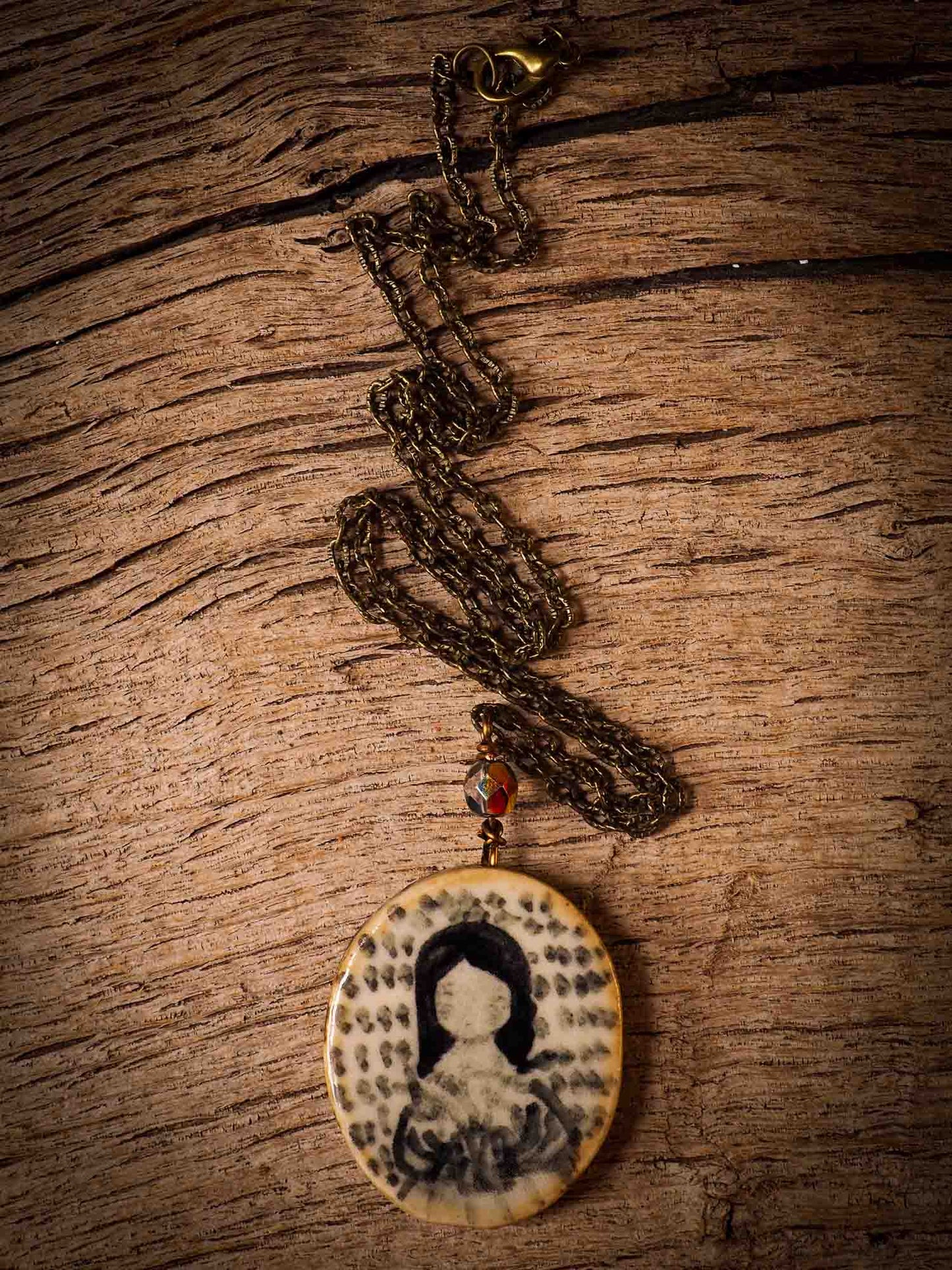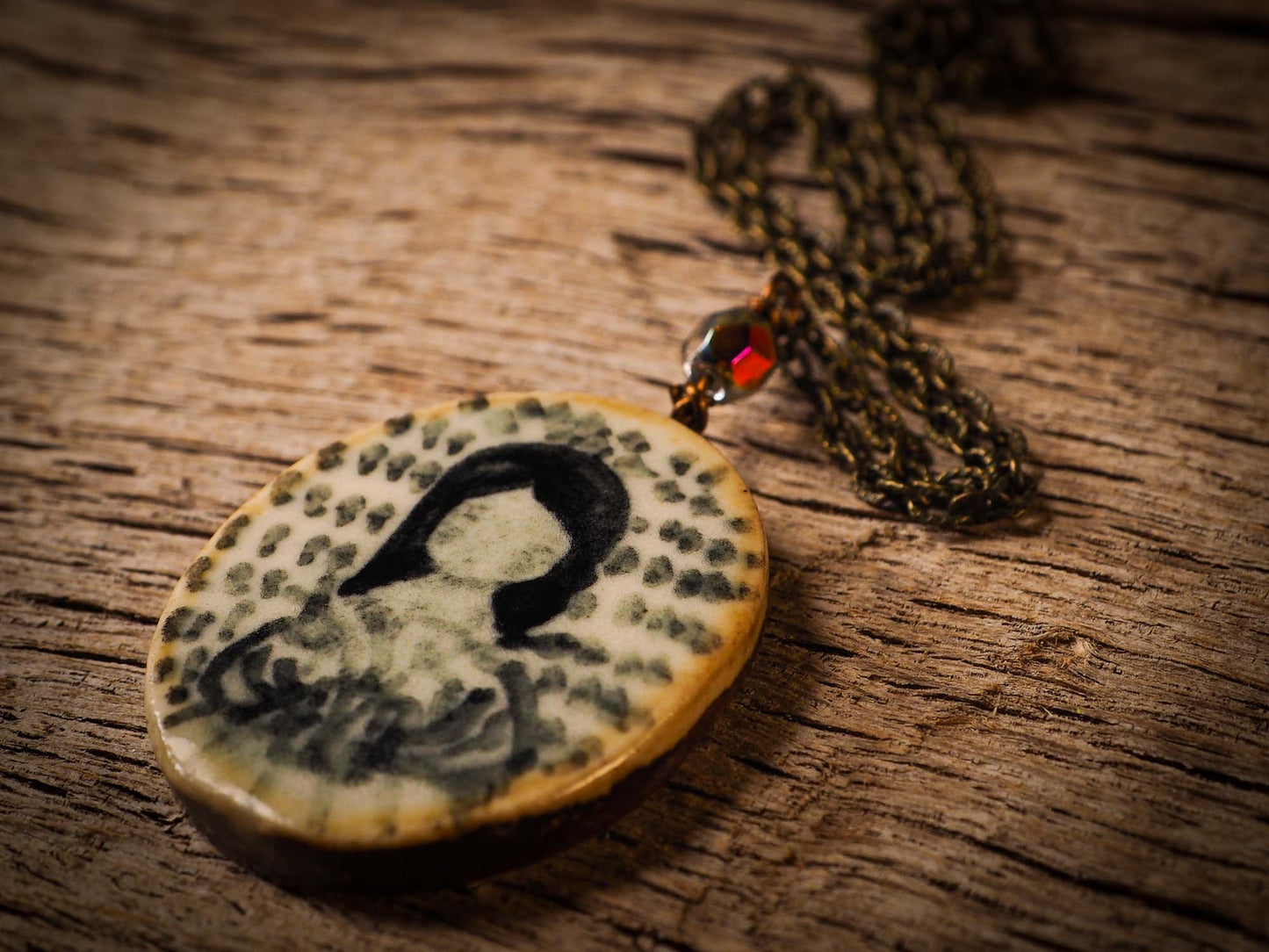 You too can imbue your necklace with the magic of your memories, so that when you wear it again, I the beautiful hand painted image on it reminds you of what drew you to it the first time you saw it, and that it lingers with you as long as you wear it.