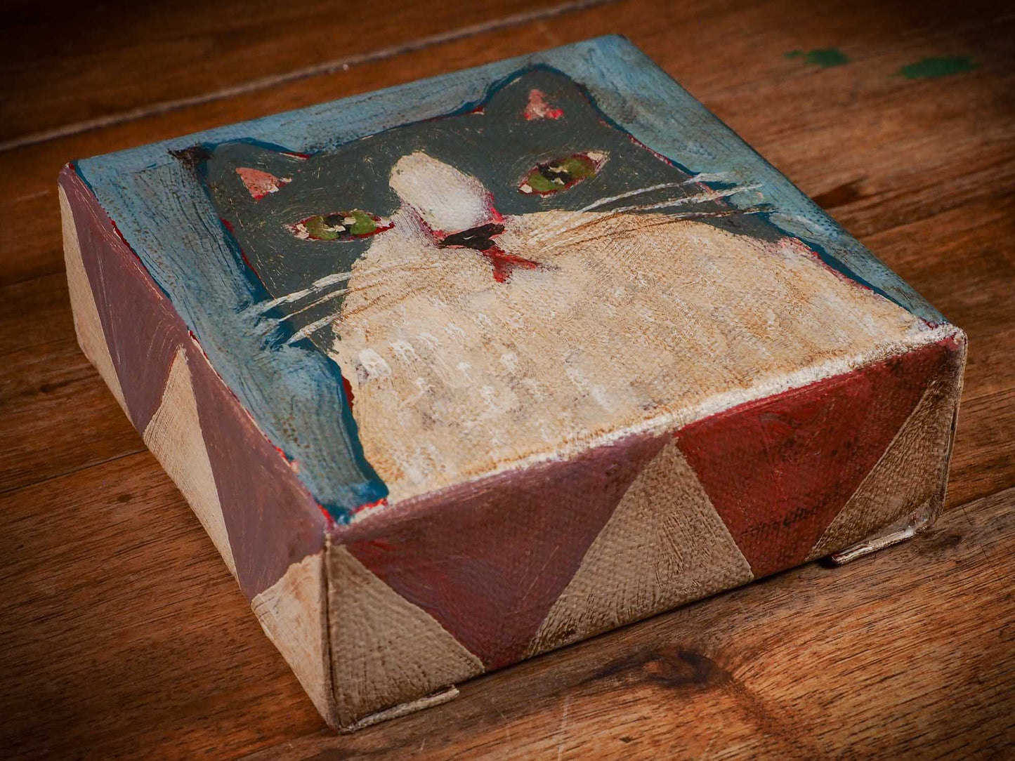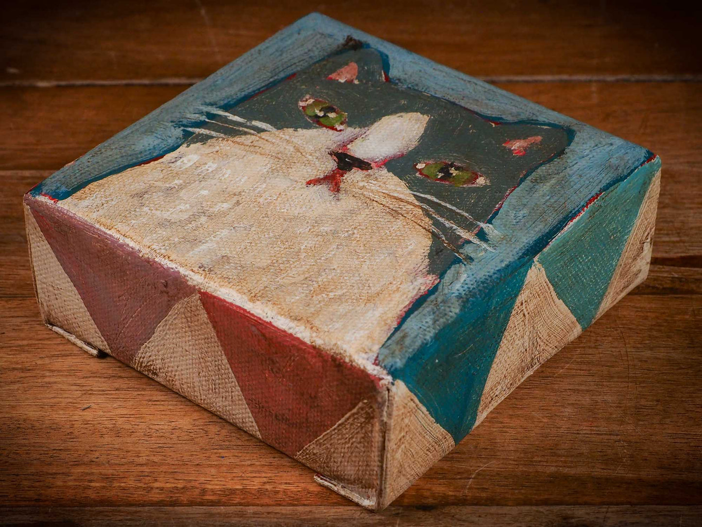 In honor of my cats, I created a small series of acrylic paintings on thick gallery style frames. Each one of these paintings was made thinking about our beloved cat army, and how each one of them brings love and joy to our family life.