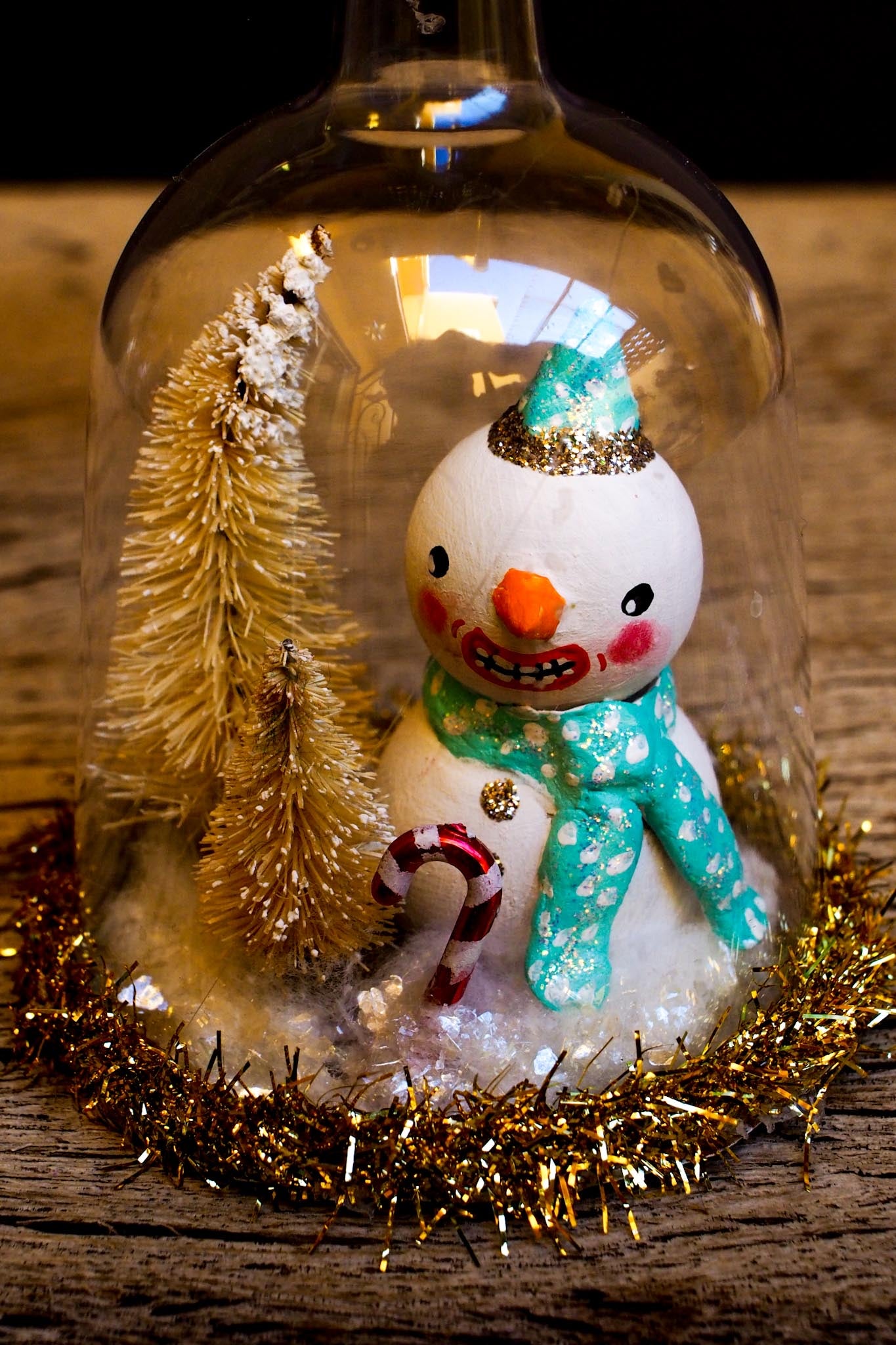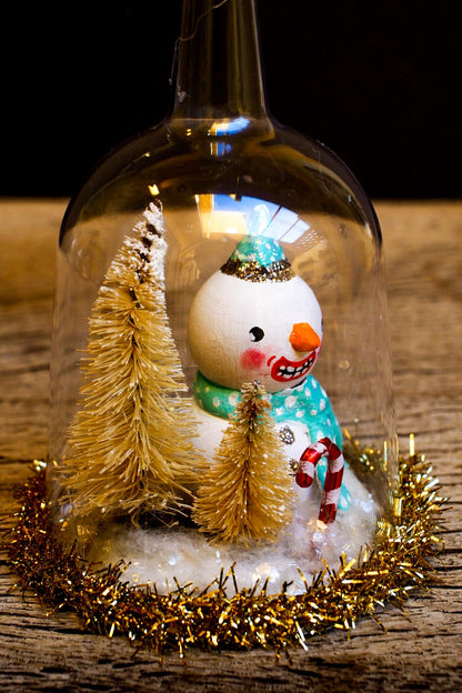 Each doll is hand painted, with a beautiful face and very detailed eyes and other facial details. Their transparent dome catches every shimmering reflection if you put them near Christmas lights. Imagine them lighted by a fireplace or a Christmas tree!
