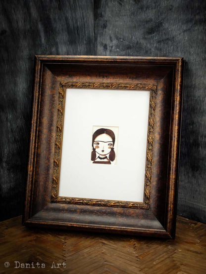 This painting measures 2.5 x 3.5 inches, and arrives mounted on an 8x10 mat, ready to place in your desk or hang on your wall on your favorite frame. Anywhere where you need a little cheerful mini Frida by Danita, she will be there to make your day brighter!