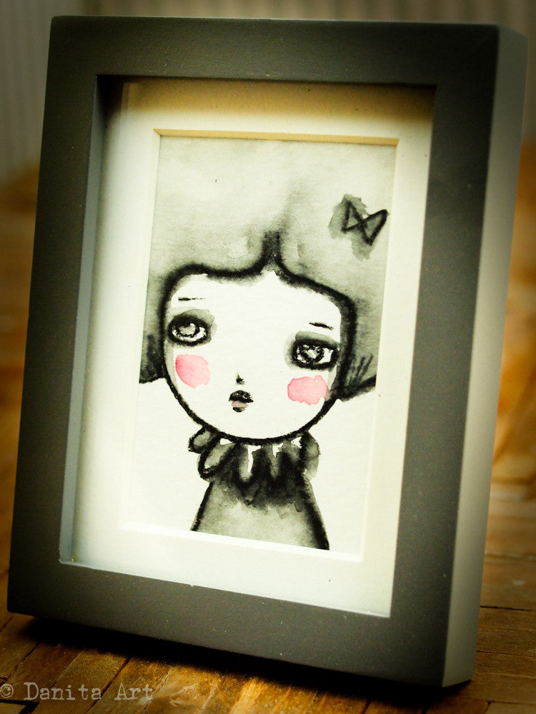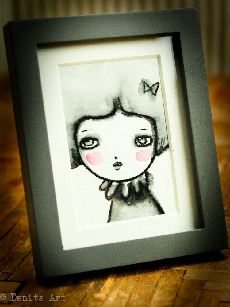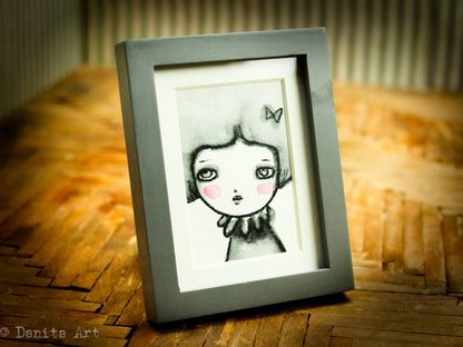 This painting arrives with a cute little 4x3 inches frame, ready to place in your desk or hang on your wall. Anywhere where you need a little cheerful mini Danita girl, she will be there to make your day brighter!