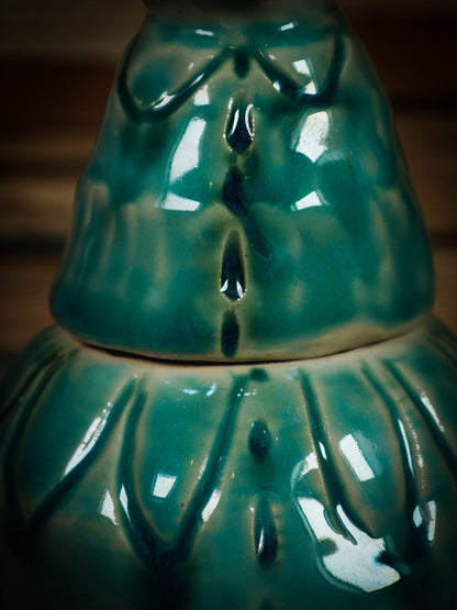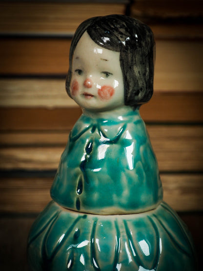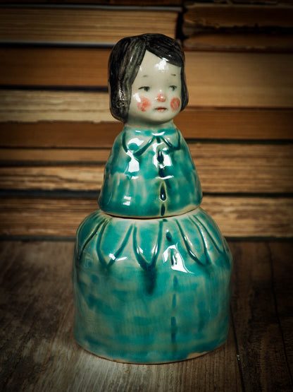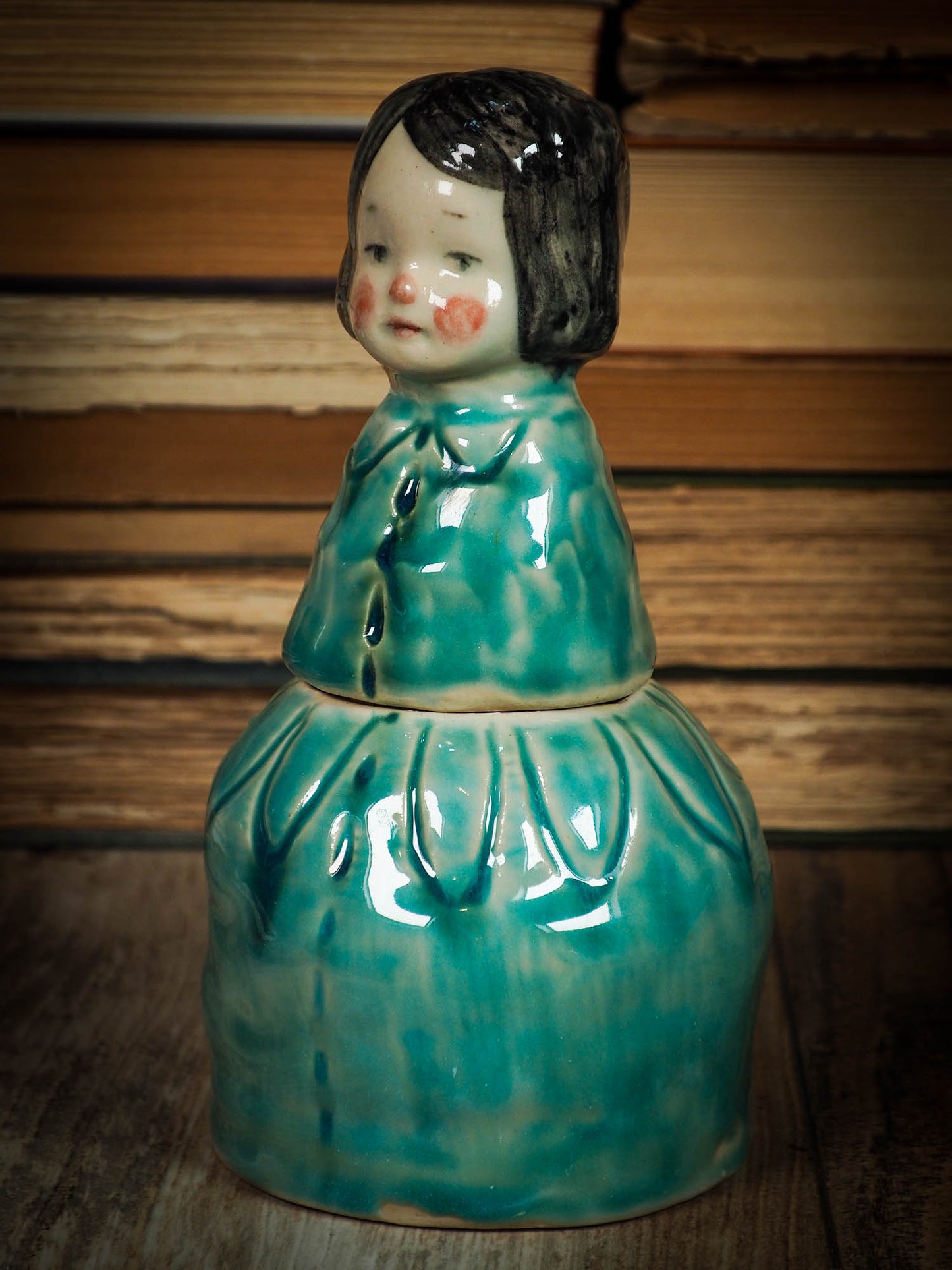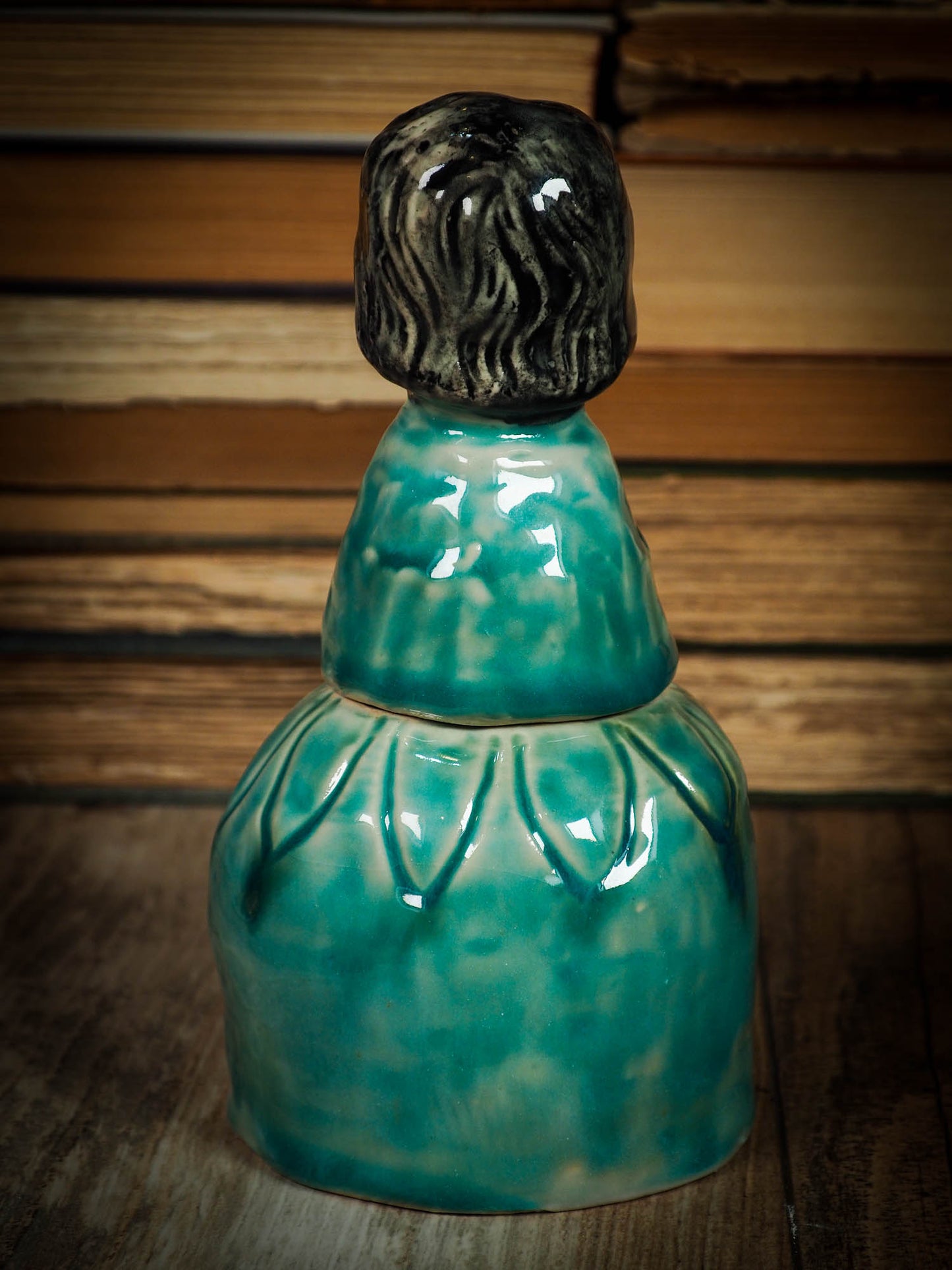 Her head acts as a stopper, in case you'd like to keep nice hidden little treasures inside her. I keep my wedding ring inside and other very dear and personal items inside one just like her on my bedroom.