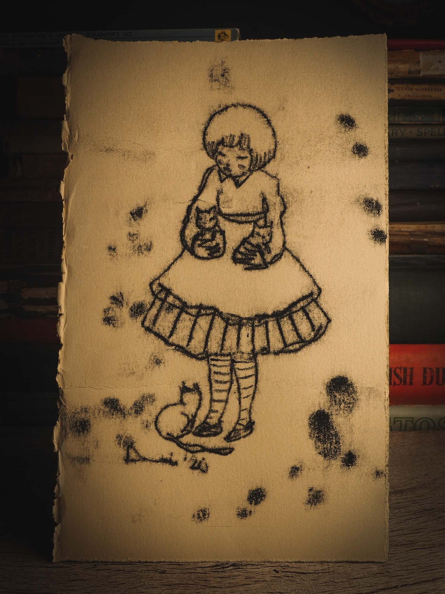 MORE KITTENS, an original ink monoprint on printmaking paper by Idania Salcido (Danita Art) measures 7 x 10 inches, ready to be mounted on your favorite frame!