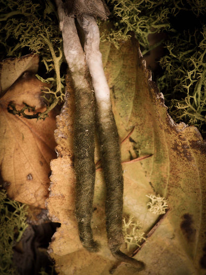 They are created from my own original patterns and using fabric that I dyed using organic dyes of my own making using 100% natural ingredients like avocado skins, walnuts and marigolds, because I wanted them to look as natural and nature inspired as possible.