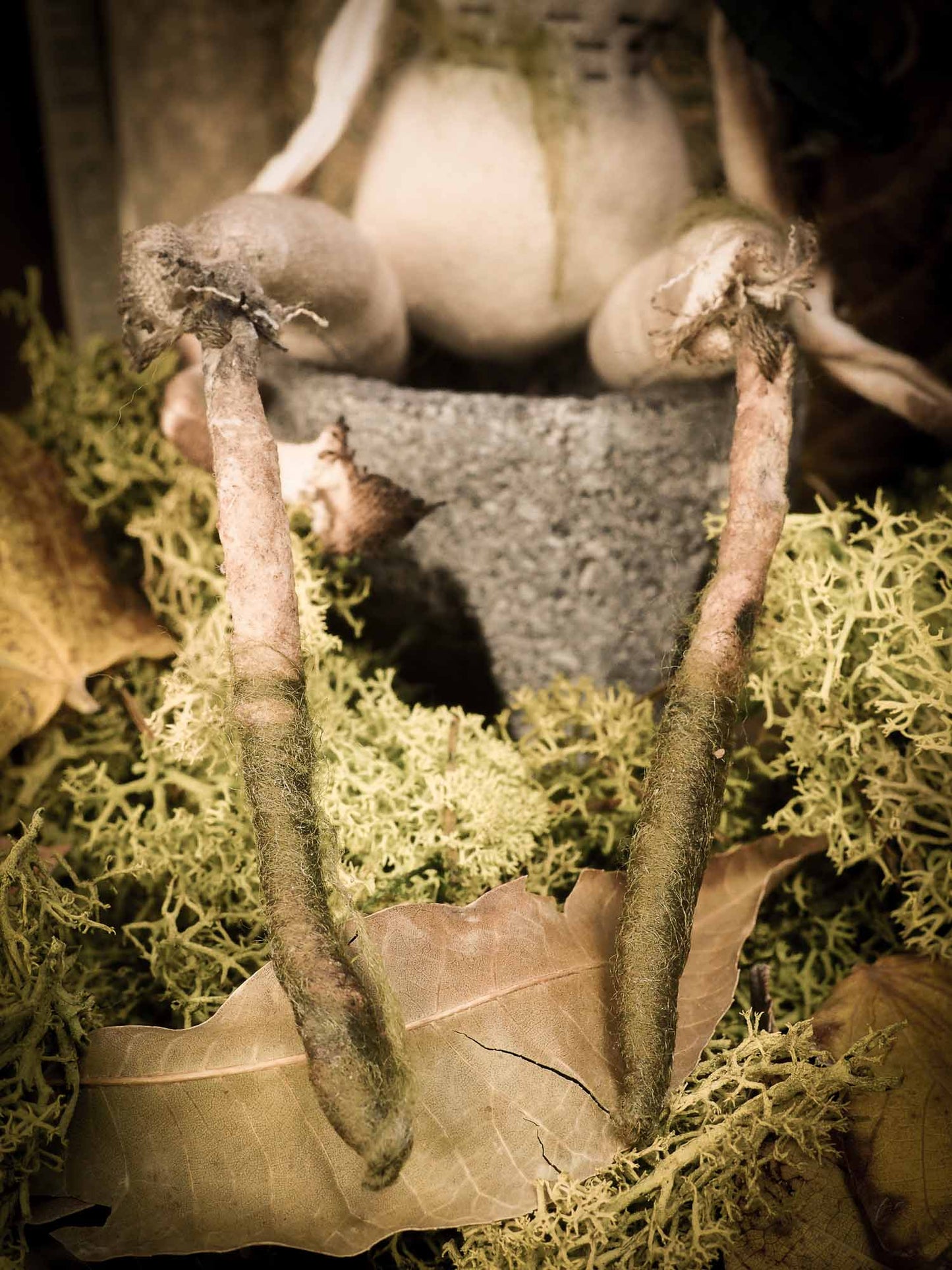 They are not toys intended for child play, but they can be handled with ease and you can even play gently with them as you pretend you are in the deep fairy forest, enjoying a wonderful day in company of your woodland friends. (I know you can, because that's what I just did while I was photographing them!)