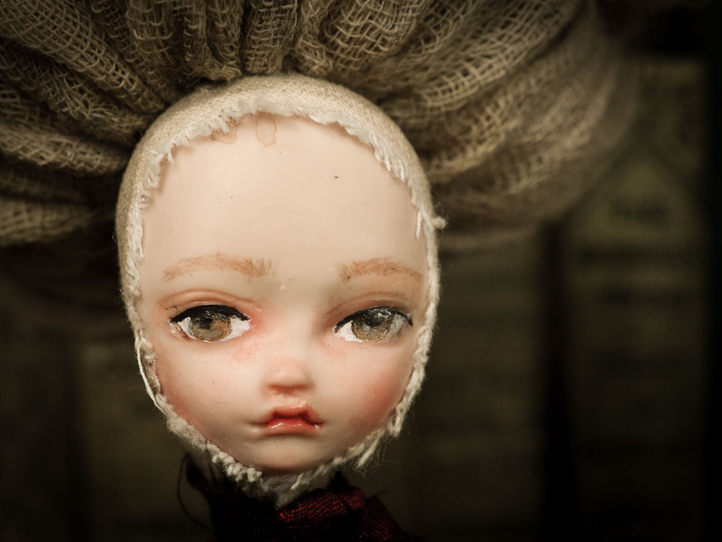 Their bodies are filled and shaped by hand, then sewn into a body that holds a beautiful air dry clay face, painted with my melancholic and mysterious eyes that you know so well, with a unique personality that makes each of them a unique piece of soft, huggable art.