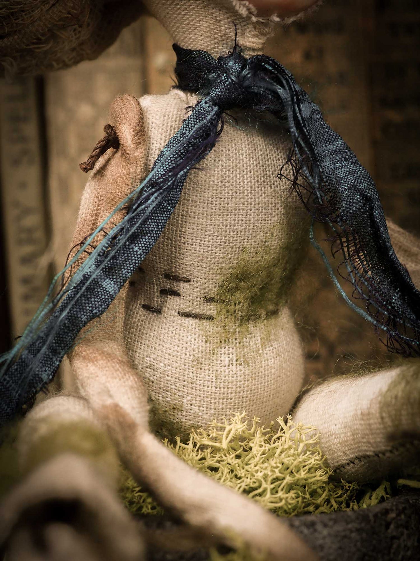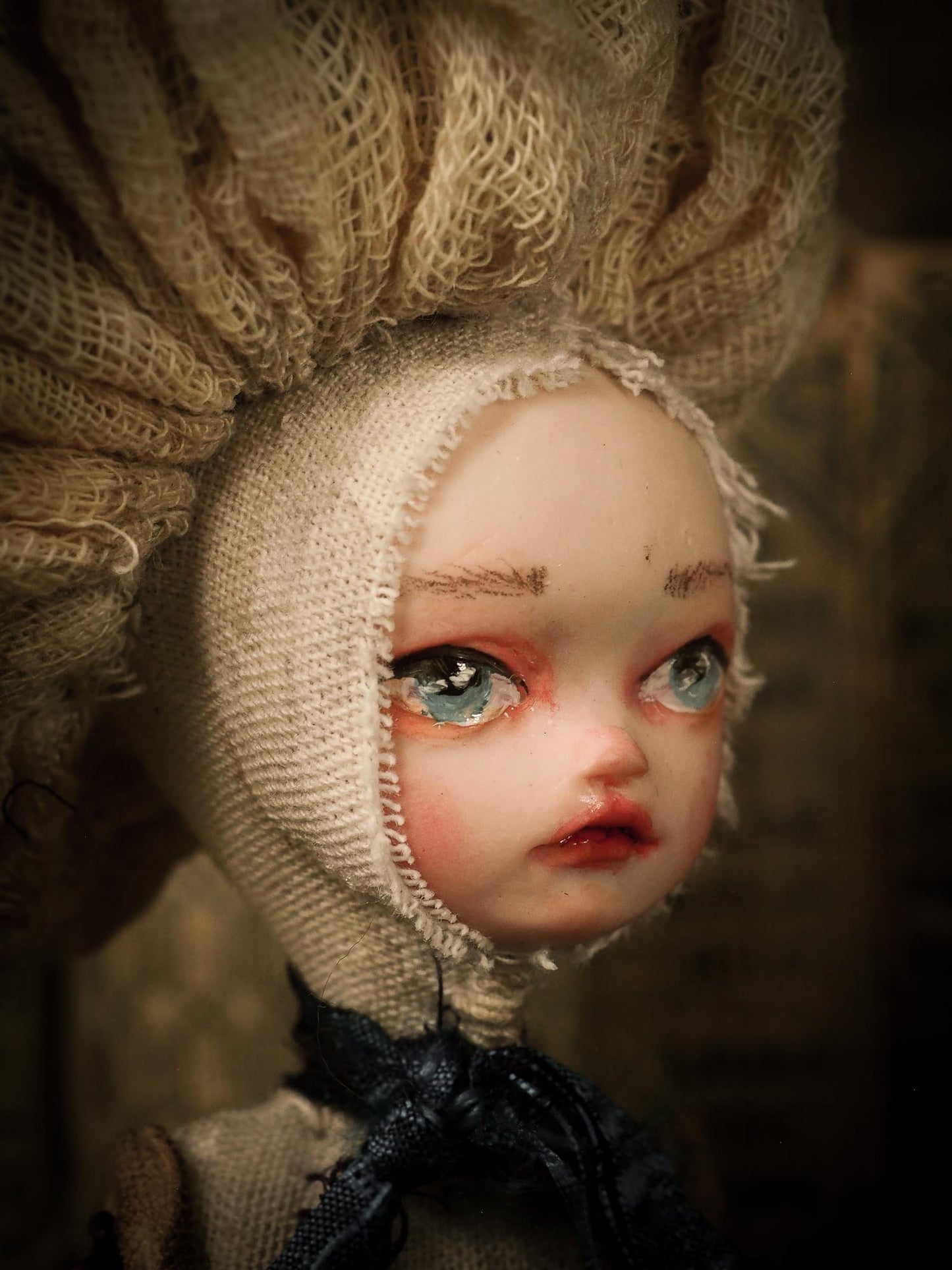 Their bodies are filled and shaped by hand, then sewn into a body that holds a beautiful air dry clay face, painted with my melancholic and mysterious eyes that you know so well, with a unique personality that makes each of them a unique piece of soft, huggable art.