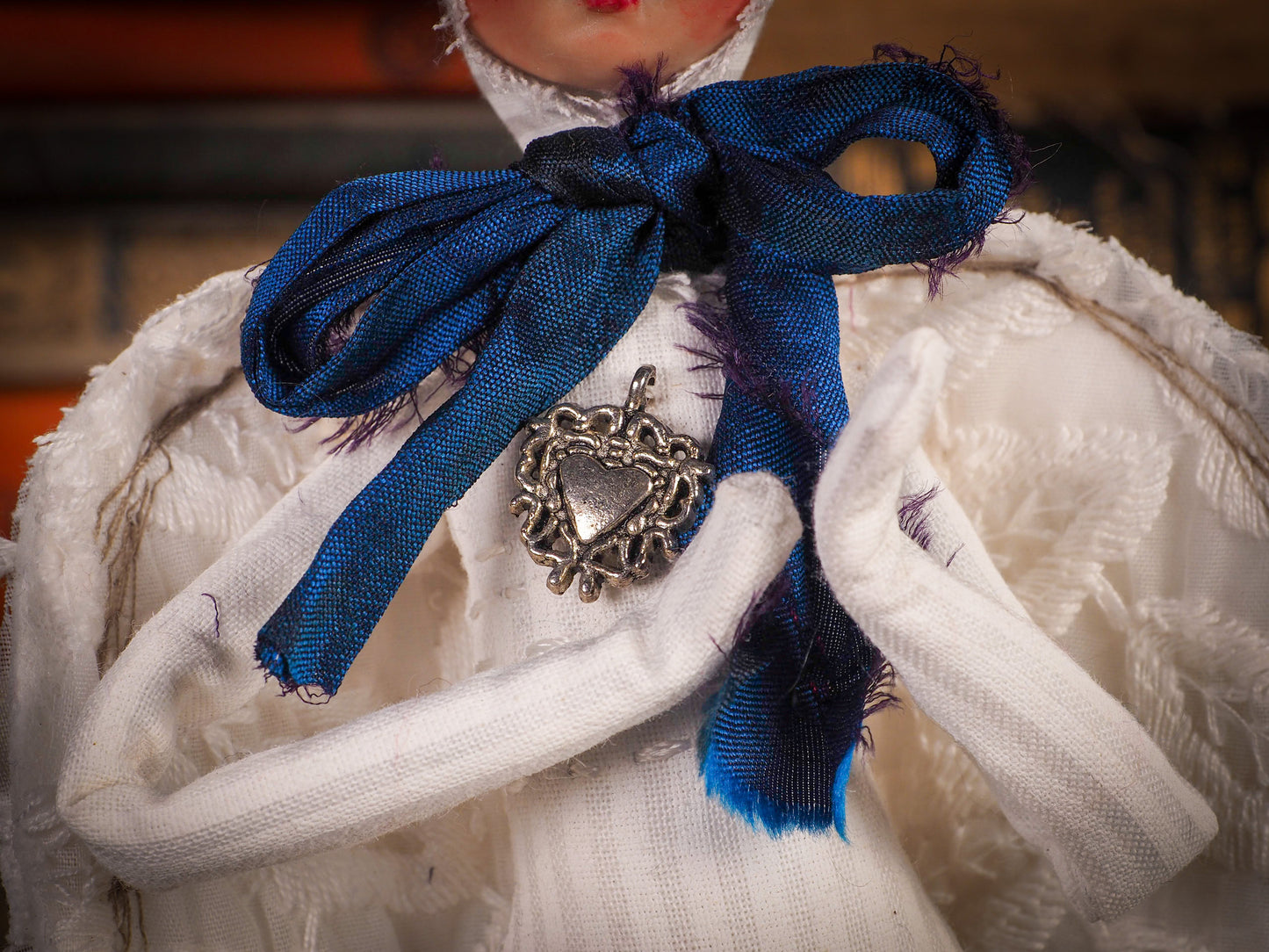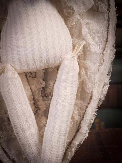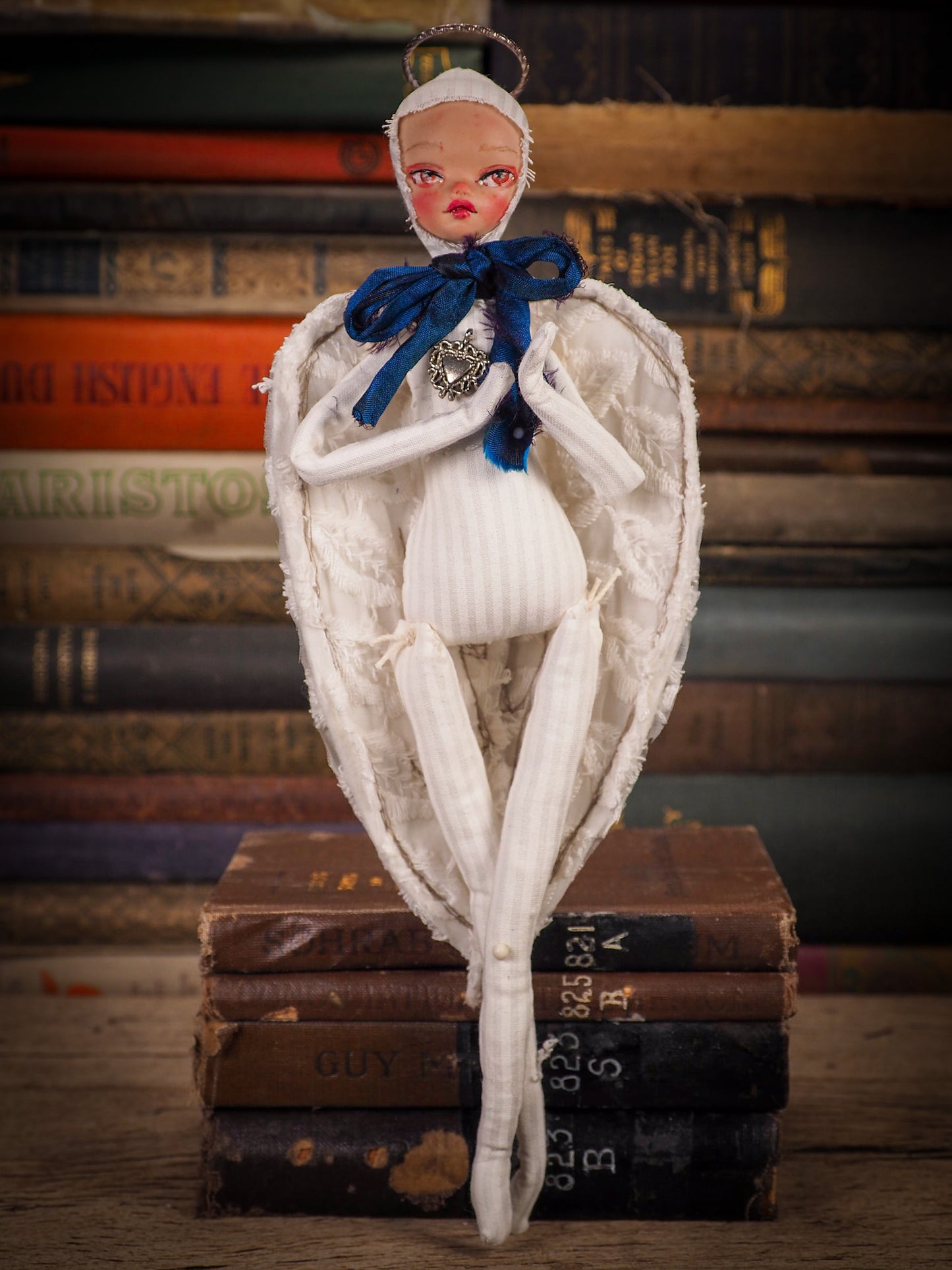 Each doll by Idania Salcido, the artist behind Danita Art is made with hand dyed fabric that I prepare myself, adorned with a lush set of fabric wings and a silky ribbon.
