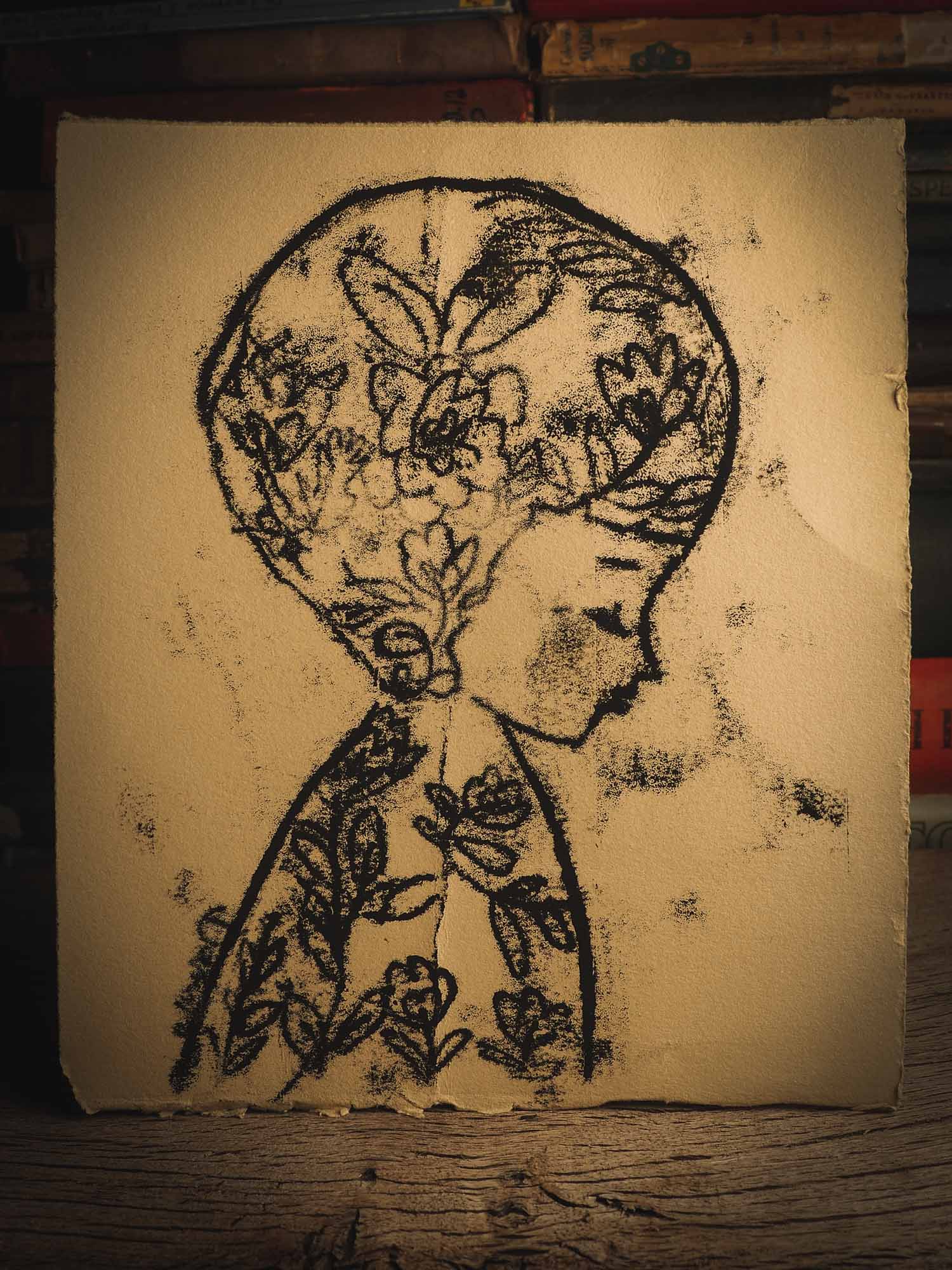 NATURE, an original ink monoprint on printmaking paper by Idania Salcido (Danita Art) measures 7 x 9 inches, ready to be mounted on your favorite frame!