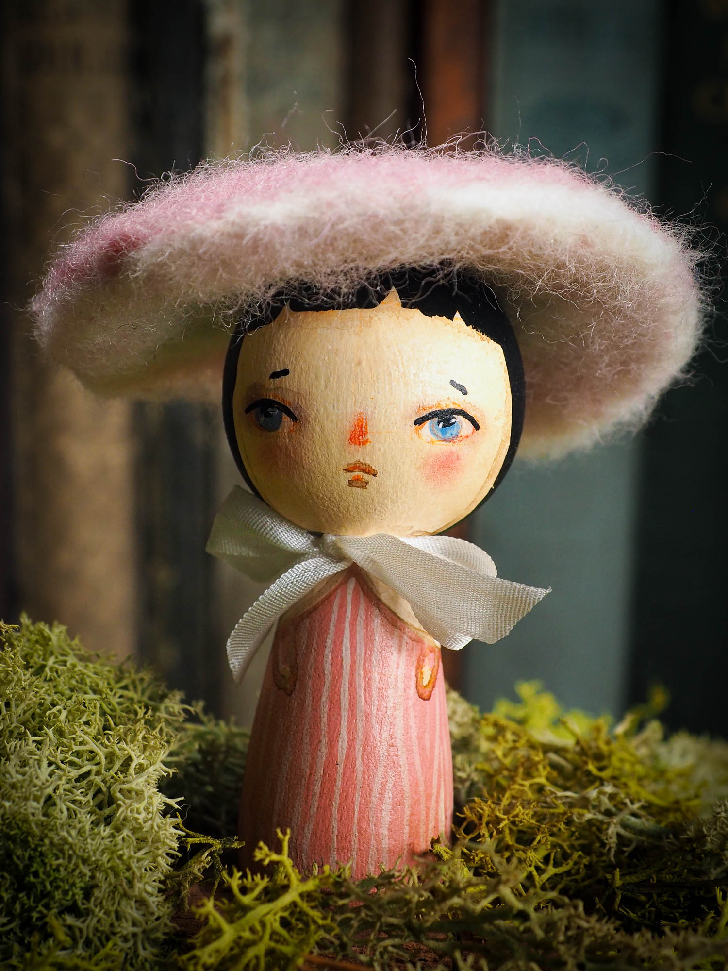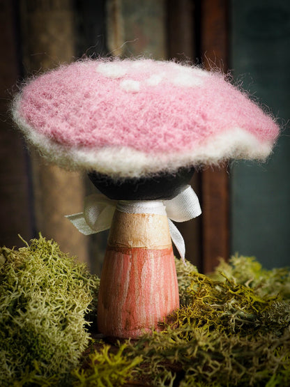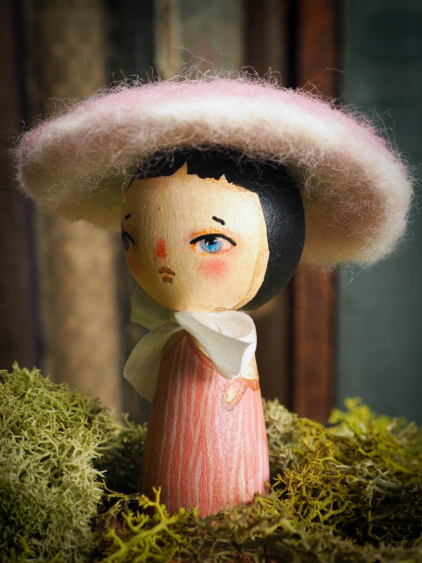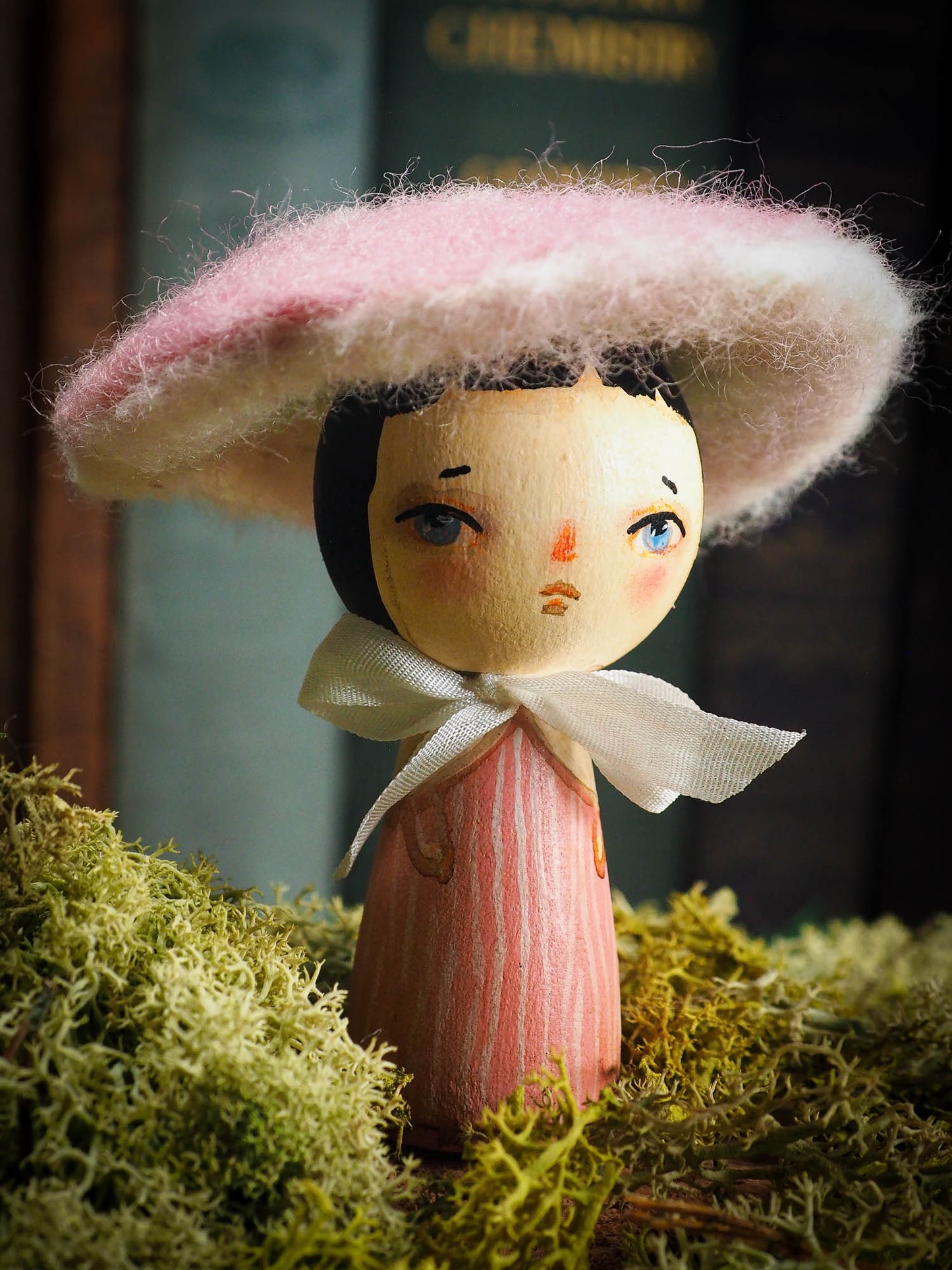 Then, they are topped by a mushroom cap made with felted organic wool. It gives them a very textured, organic and woodland feel to them.