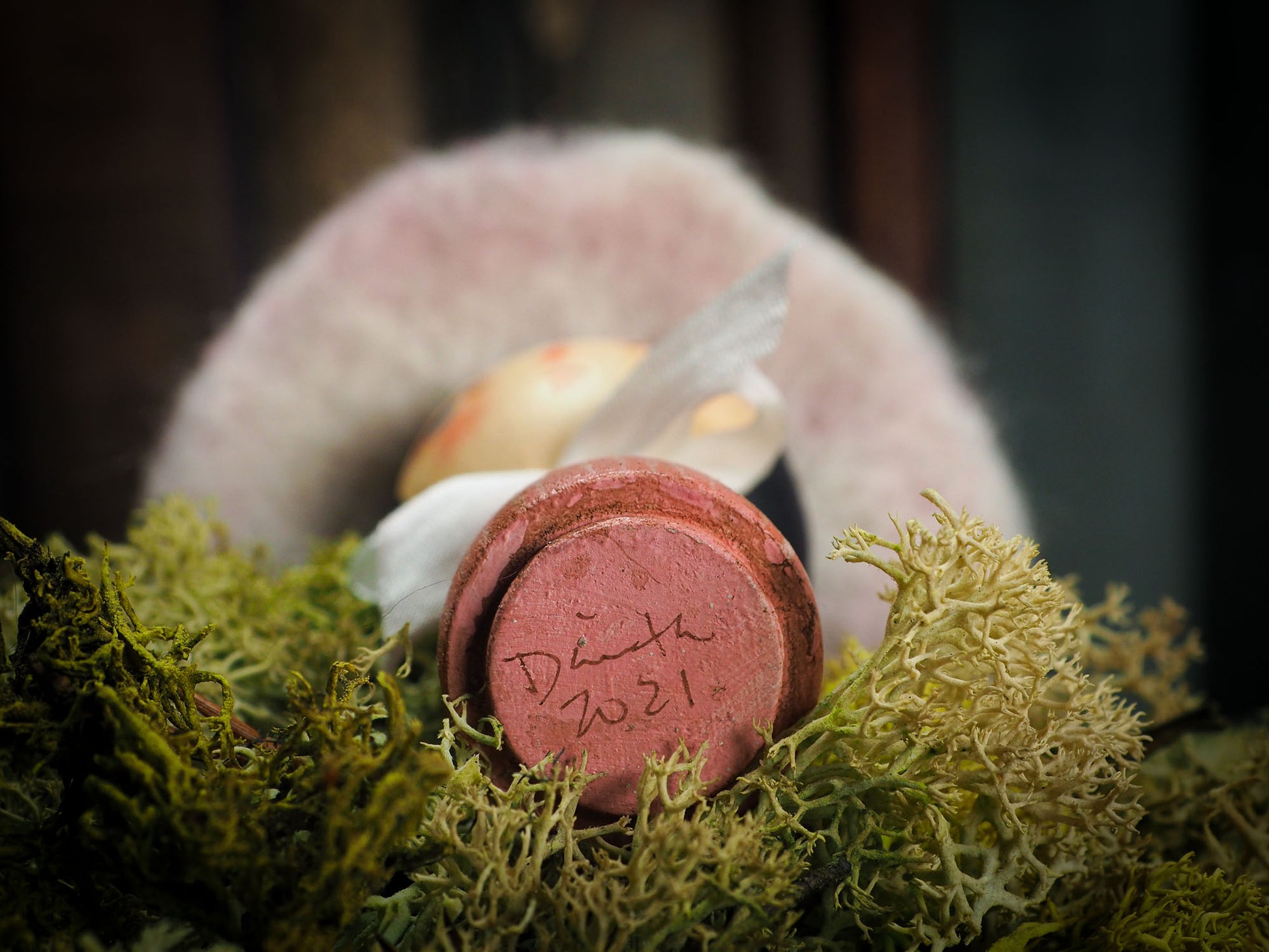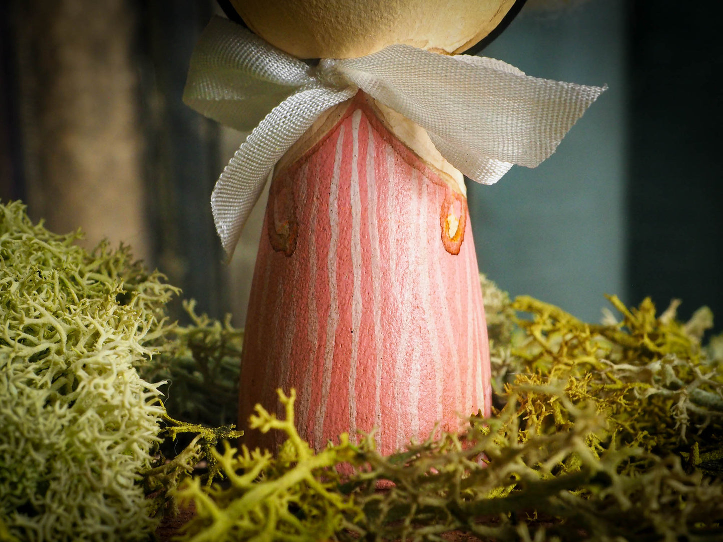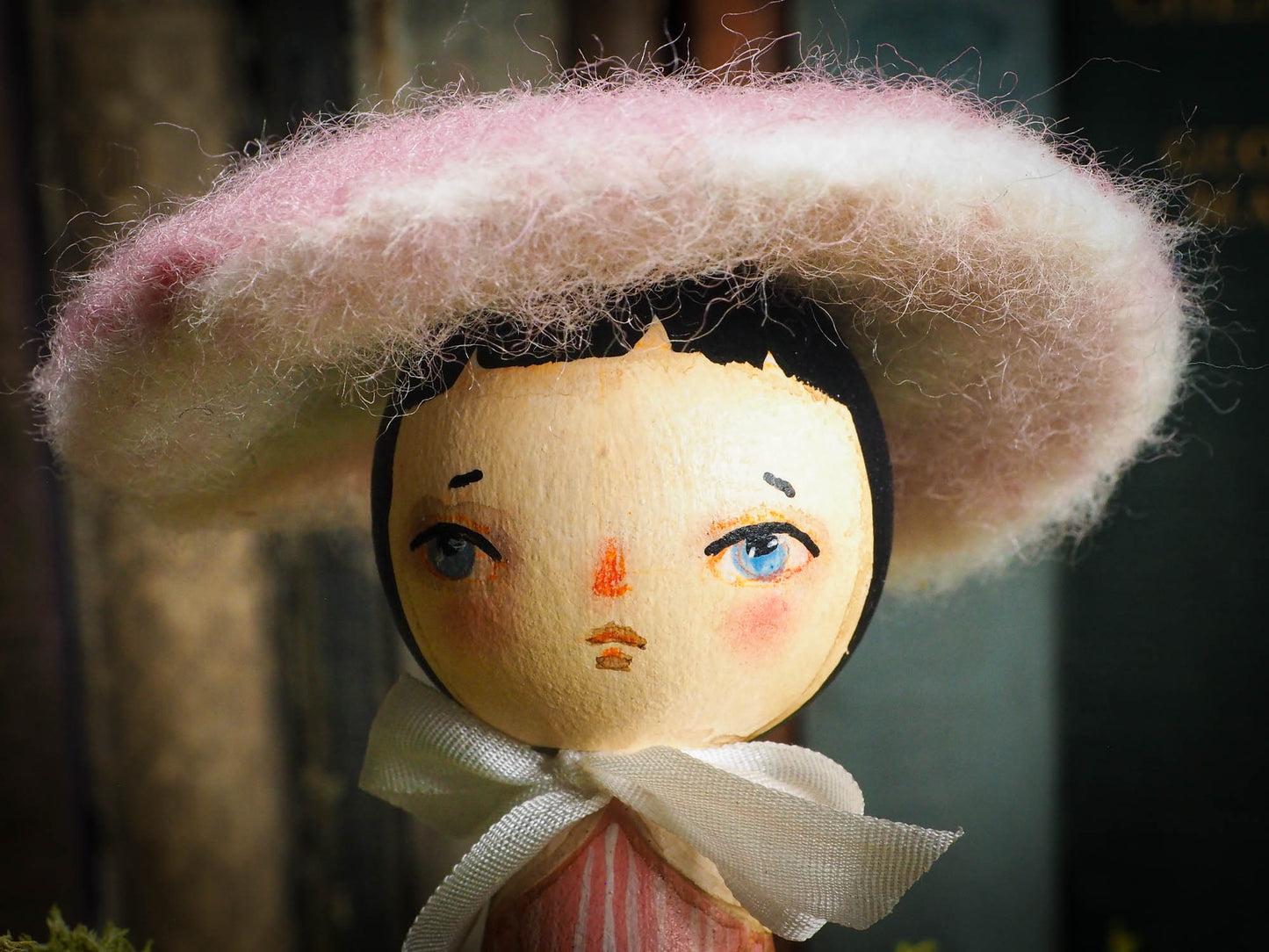 Then, they are topped by a mushroom cap made with felted organic wool. It gives them a very textured, organic and woodland feel to them.