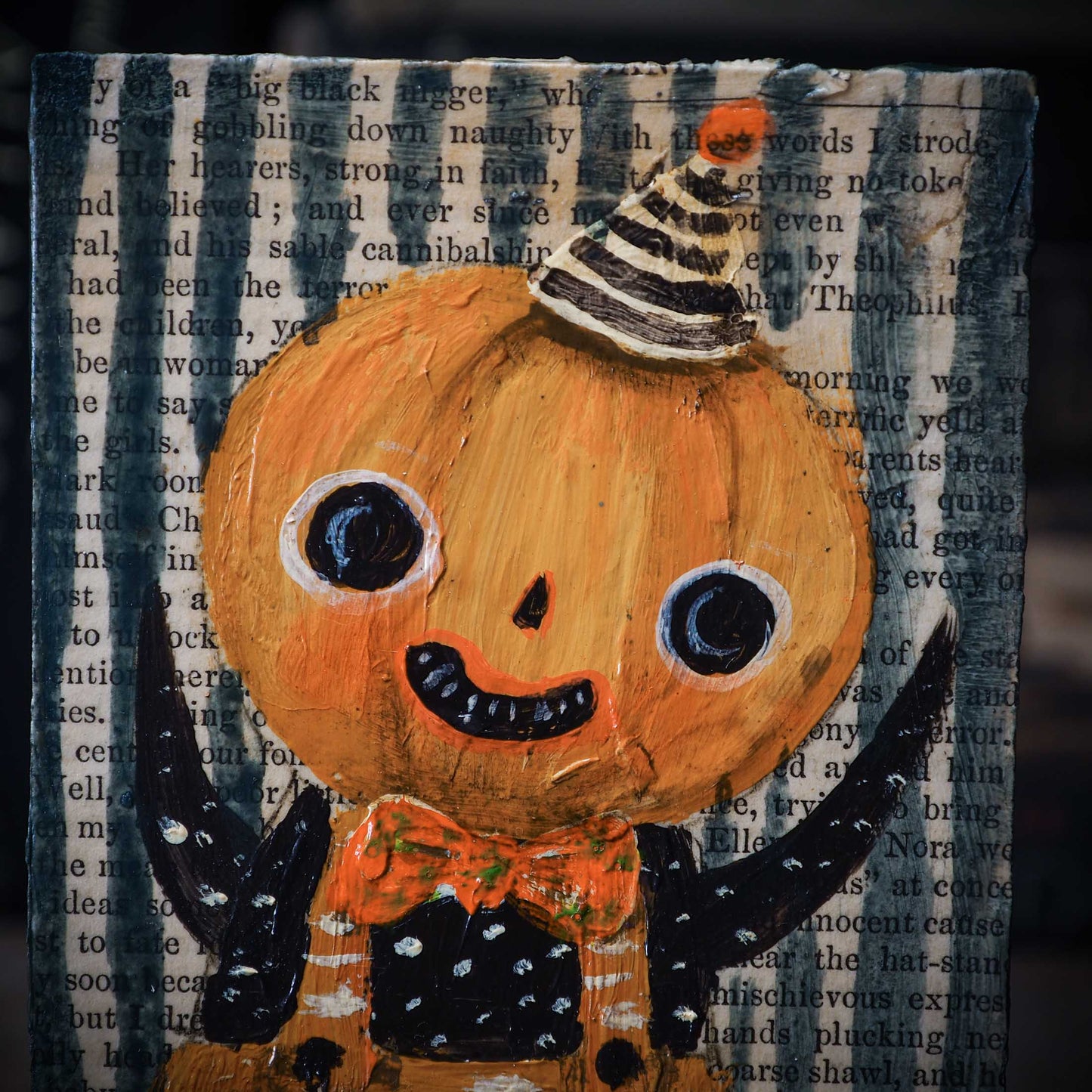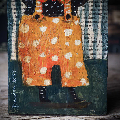Halloween is coming, and my inspiration has just started! And for my first collection, I create a series of outsider folk art paintings with bright colors and rough textures over a wood block.