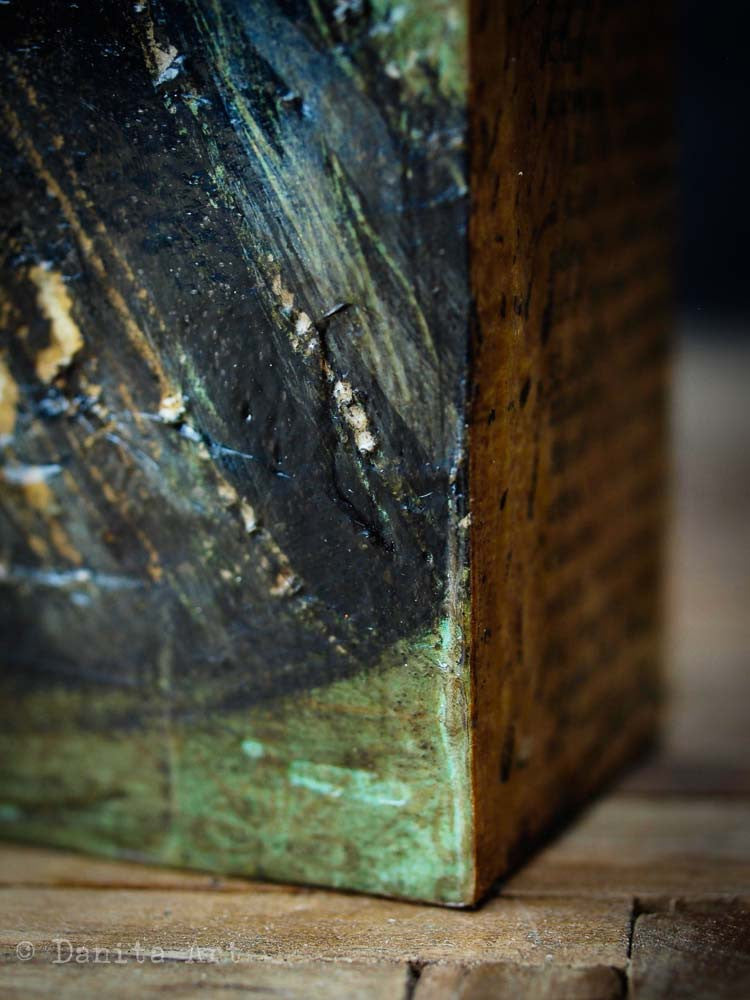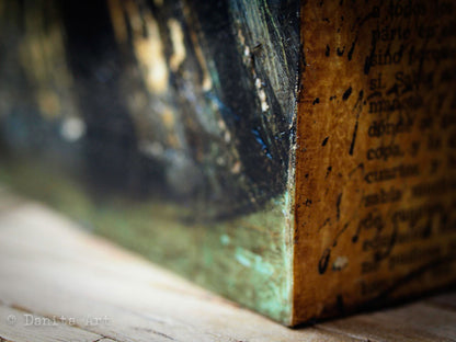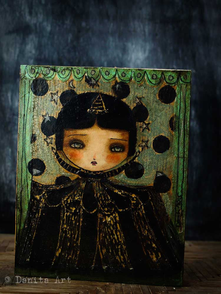 This original painting by Danita is made on an 8 x 10 inches wood panel and the painting and decorations going over the edge of the painting.