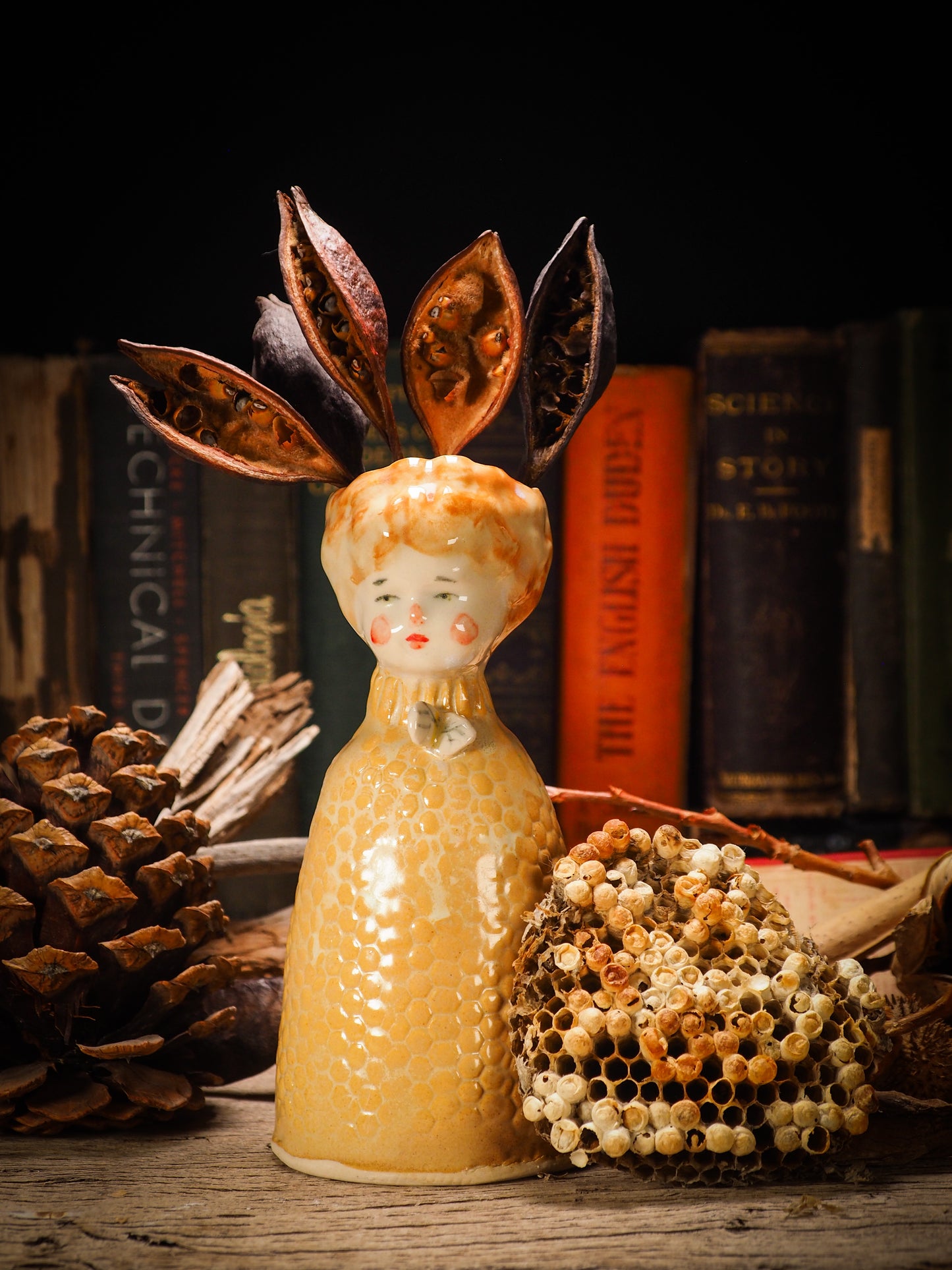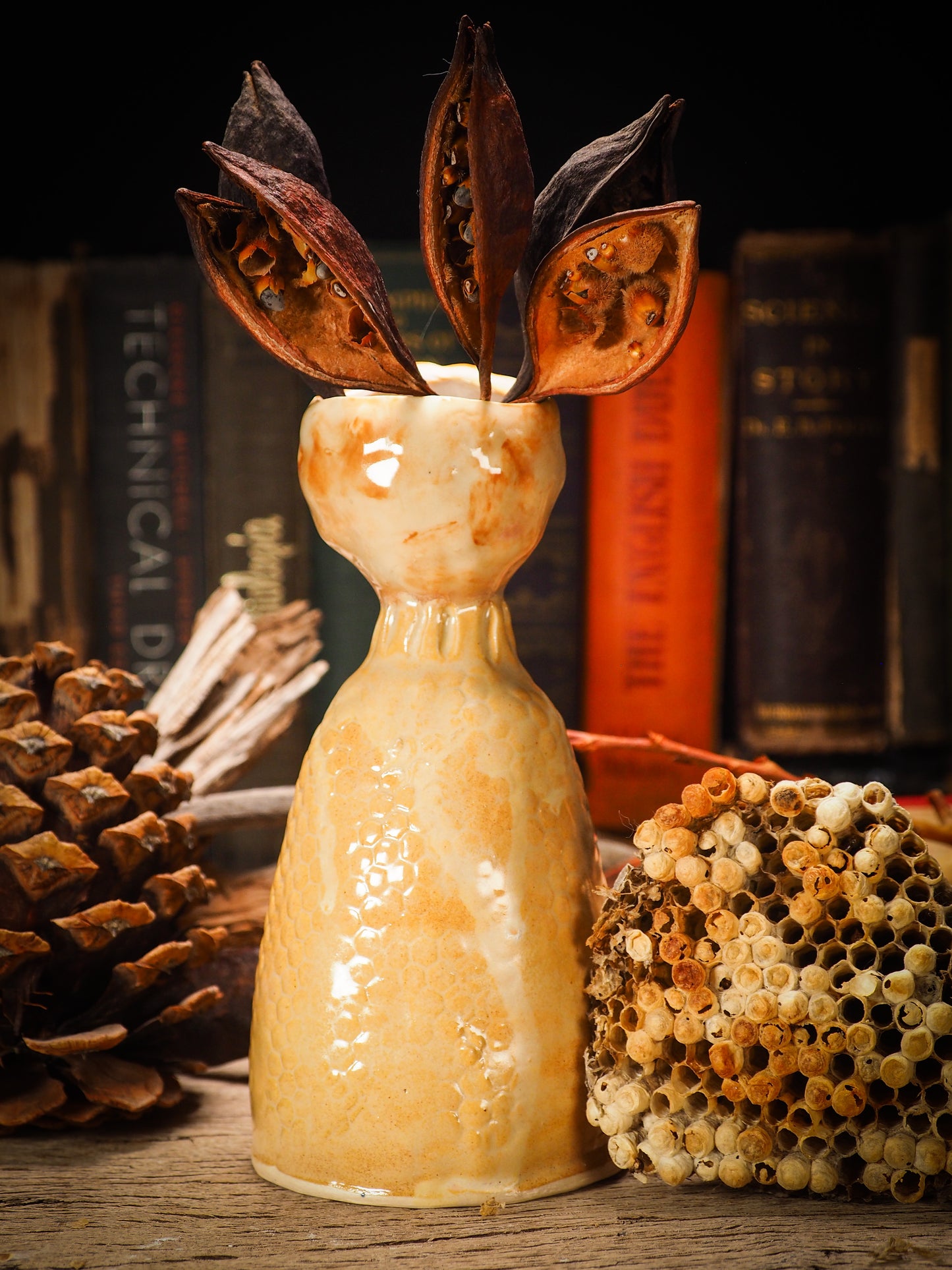 You are looking at an original handmade ceramic vase by Idania Salcido, the artist behind Danita Art. Each one is a unique work of art on itself, inspired and designed by the work of honeybees on my small container garden. Hand built by me, glazed and fired on my old school kiln.