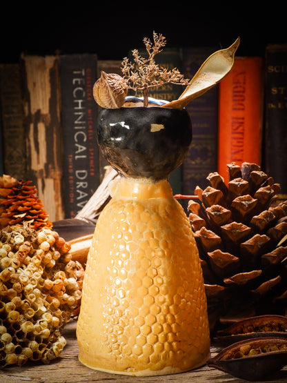 You are looking at an original handmade ceramic vase by Idania Salcido, the artist behind Danita Art. Each one is a unique work of art on itself, inspired and designed by the work of honeybees on my small container garden. Hand built by me, glazed and fired on my old school kiln.