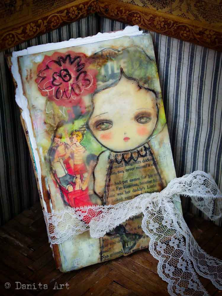 Working with beeswax is always magical. It transforms your piece into something deeper than it was and gives it an ethereal look nothing else can replicate. Adding beeswax to the original illustrations I make on the cover of vintage books I buy on thrifty shops in order to turn them into art  journals gives new life to the books nobody wants any more and upcycles them from something beautiful into something out of this world.
