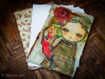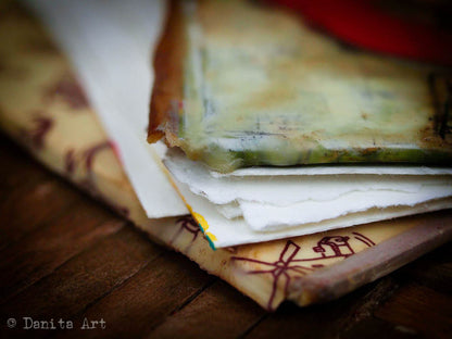 This journal measures approximately 7 1/2 x 5 inches (19 x 12 cm), and comes with a set of hand cut mixed media paper sheets to unleash you creativity right away. Once you use the supplied paper, you can always add more to keep your creative juice flowing.