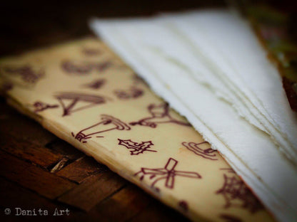 Once you have your original art journal in your hands you'll know what I mean. Beeswax is not just a feast for the eyes but also an alchemy of textures and scents to please all your senses. The smooth feel of the beeswax on your fingers, the beautiful imagery full of mixed media details, the sweet scent of honey when you open the covers to work with them. When you hold this magic infused journal, you'll feel like you have been giving a precious secret to keep forever.