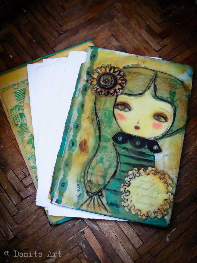 Once you have your original art journal in your hands you'll know what I mean. Beeswax is not just a feast for the eyes but also an alchemy of textures and scents to please all your senses. The smooth feel of the beeswax on your fingers, the beautiful imagery full of mixed media details, the sweet scent of honey when you open the covers to work with them. When you hold this magic infused journal, you'll feel like you have been giving a precious secret to keep forever.