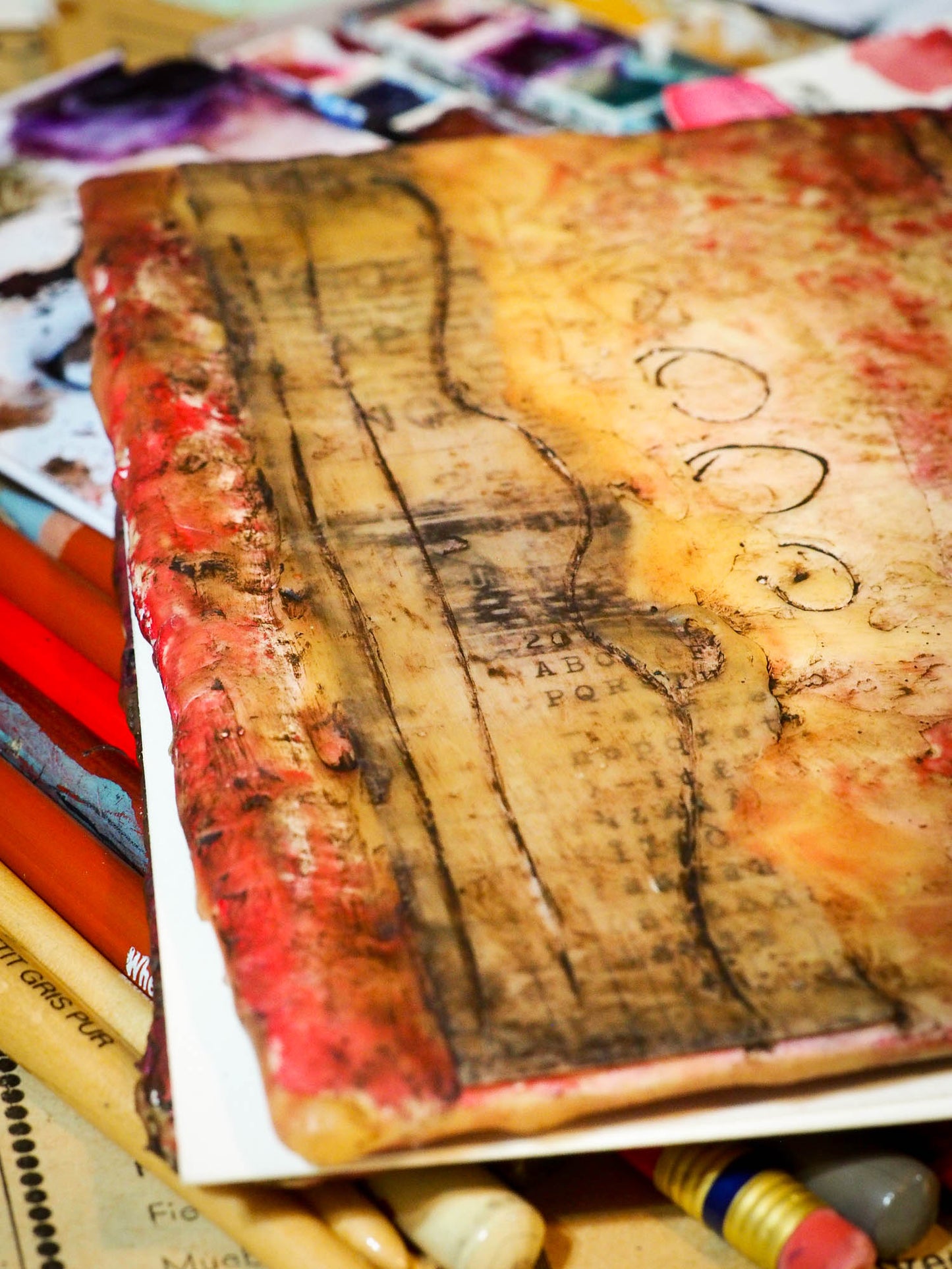Working with beeswax is always magical. It transforms your piece into something deeper than it was and gives it an ethereal look nothing else can replicate. Adding beeswax to the original illustrations I make on the cover of vintage books I buy on thrifty shops in order to turn them into art  journals gives new life to the books nobody wants any more and upcycles them from something beautiful into something out of this world.