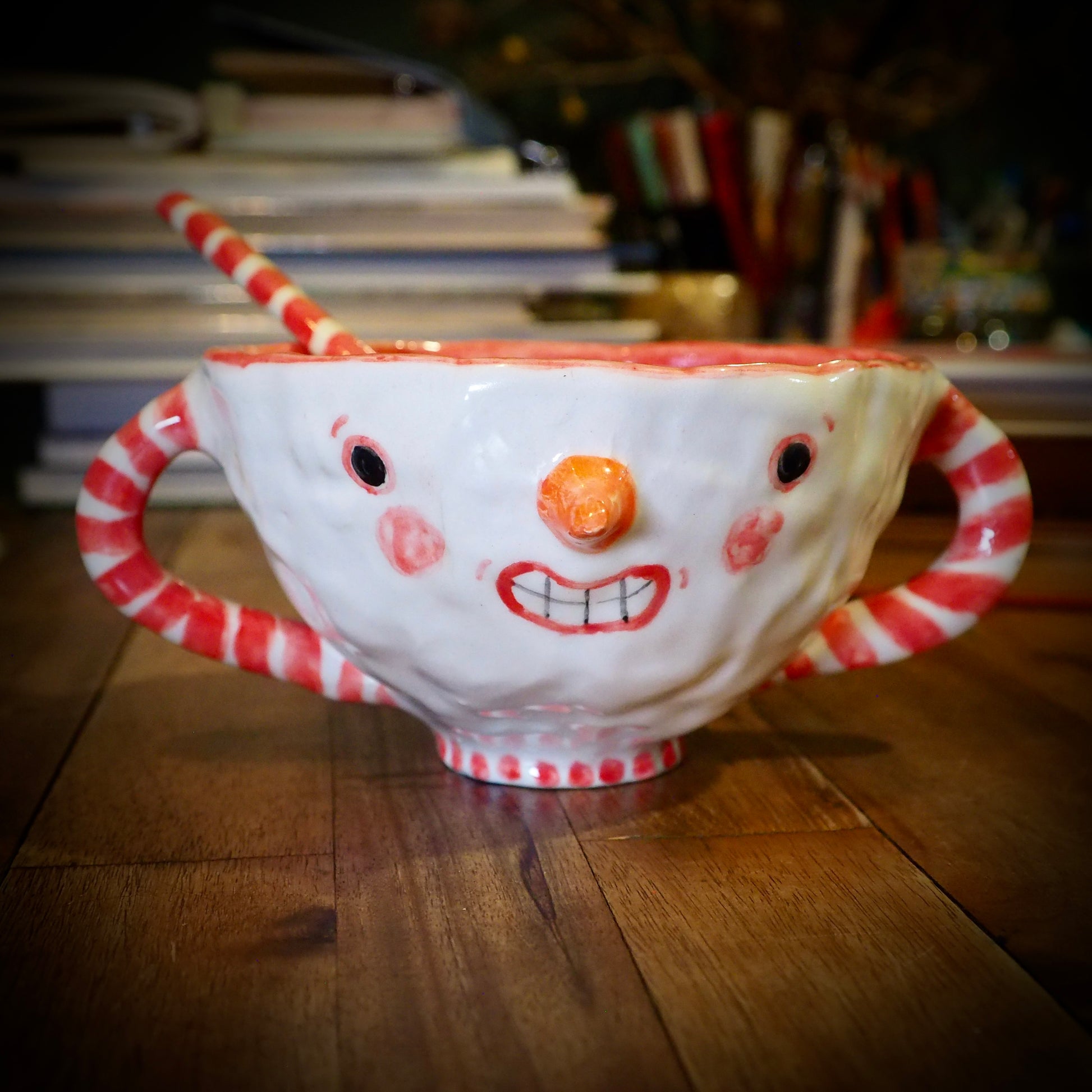 An original, handmade holiday mug by Idania Salcido, the artist behind Danita Art.