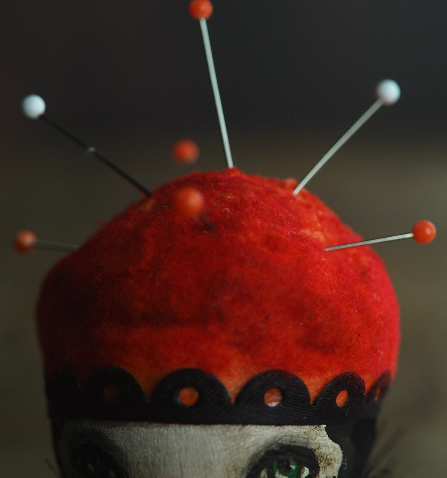 Pincushion girl in red - Voodoo doll sewing accessory art doll by Danita.