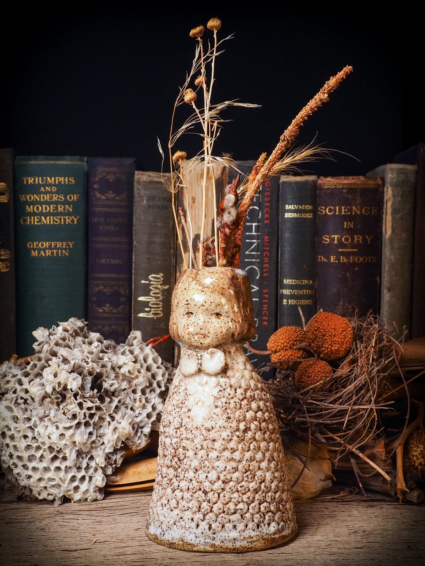 You are looking at an original handmade ceramic vase by Idania Salcido, the artist behind Danita Art. Each one is a unique work of art on itself, inspired and designed by the work of honeybees on my small container garden. Hand built by me, glazed and fired on my old school kiln.