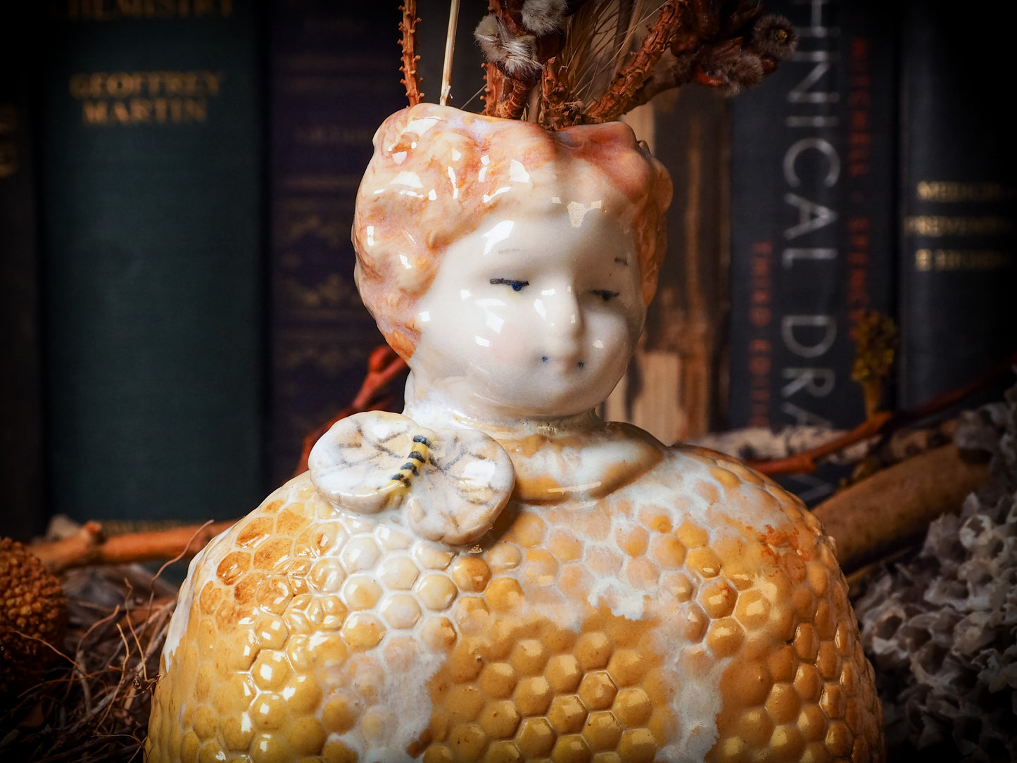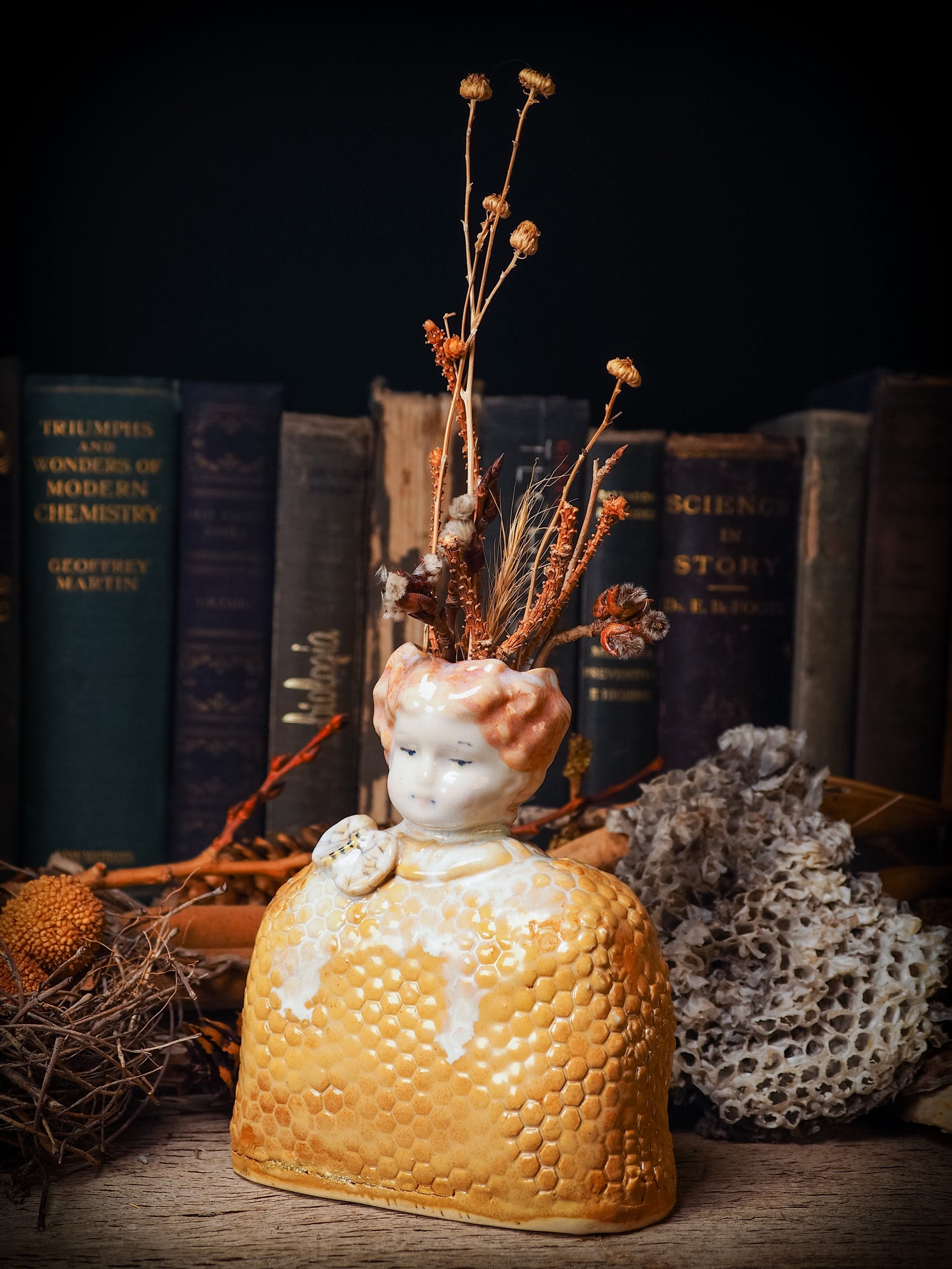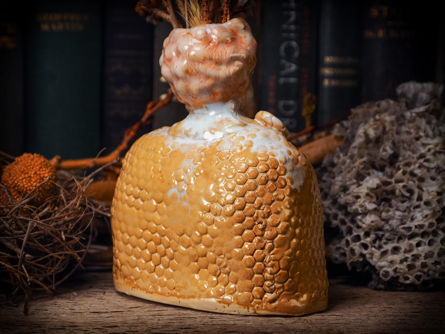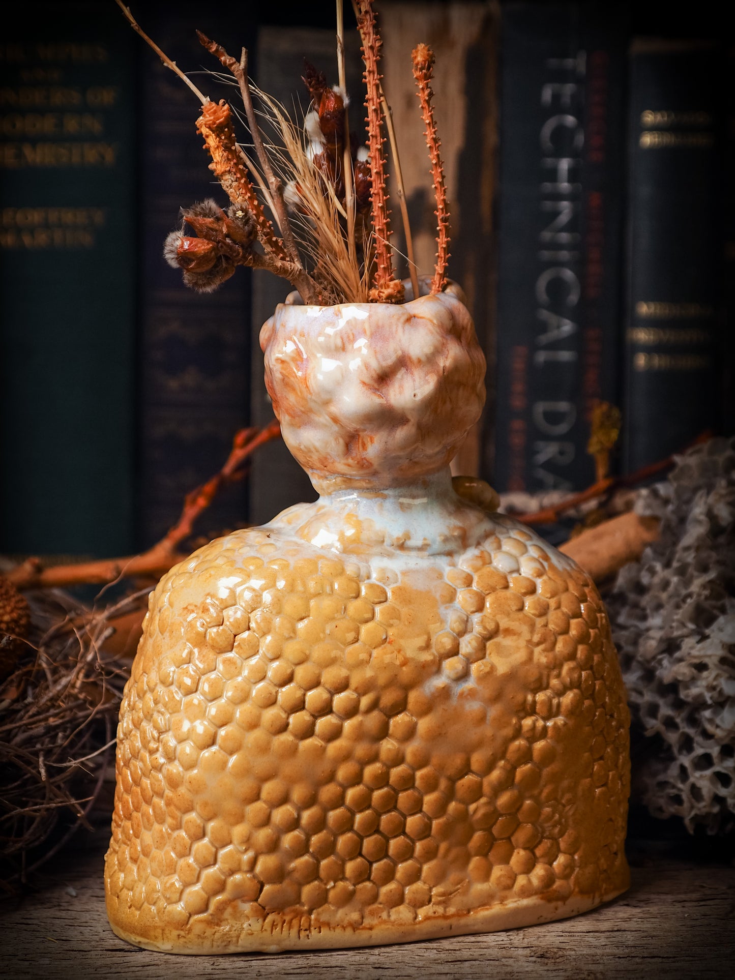You are looking at an original handmade ceramic vase by Idania Salcido, the artist behind Danita Art. Each one is a unique work of art on itself, inspired and designed by the work of honeybees on my small container garden. Hand built by me, glazed and fired on my old school kiln.