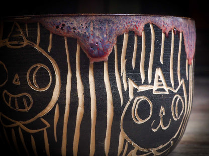 Perfect to enjoy your Halloween booty, or maybe a little ice cream and fruit and can be used as a pet cat bowl. My cats love theirs! It's 100% Food safe ceramic, hand wash only.