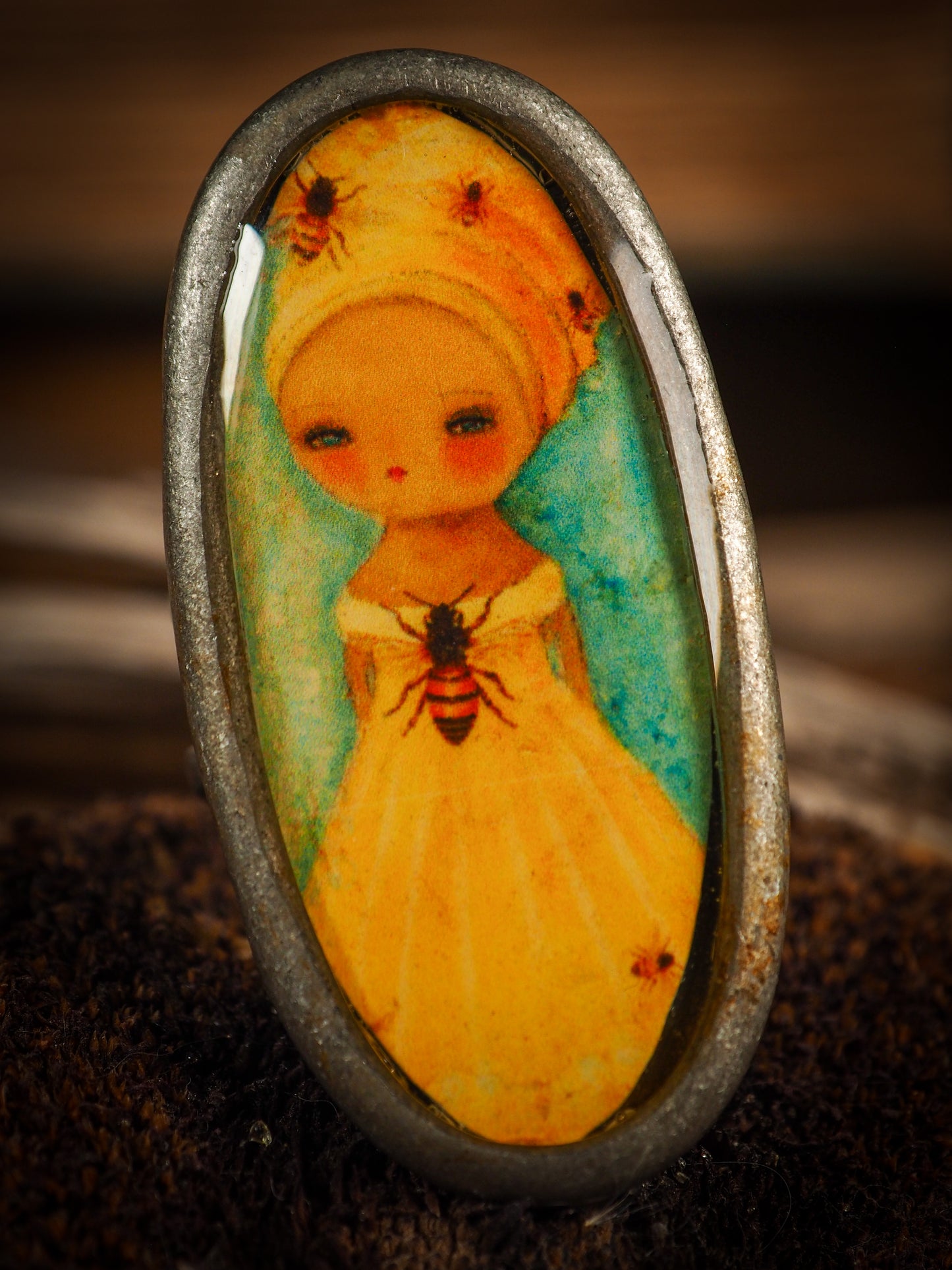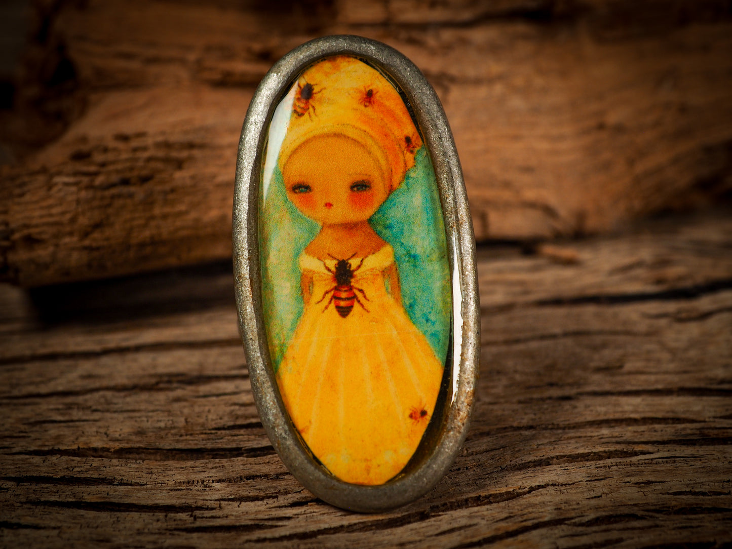 This ring is adjustable to different finger sizes and the oval image will create a statement of boldness and confidence that will draw looks and attention to your hands when you wear this powerful little piece with one of my favorite image.