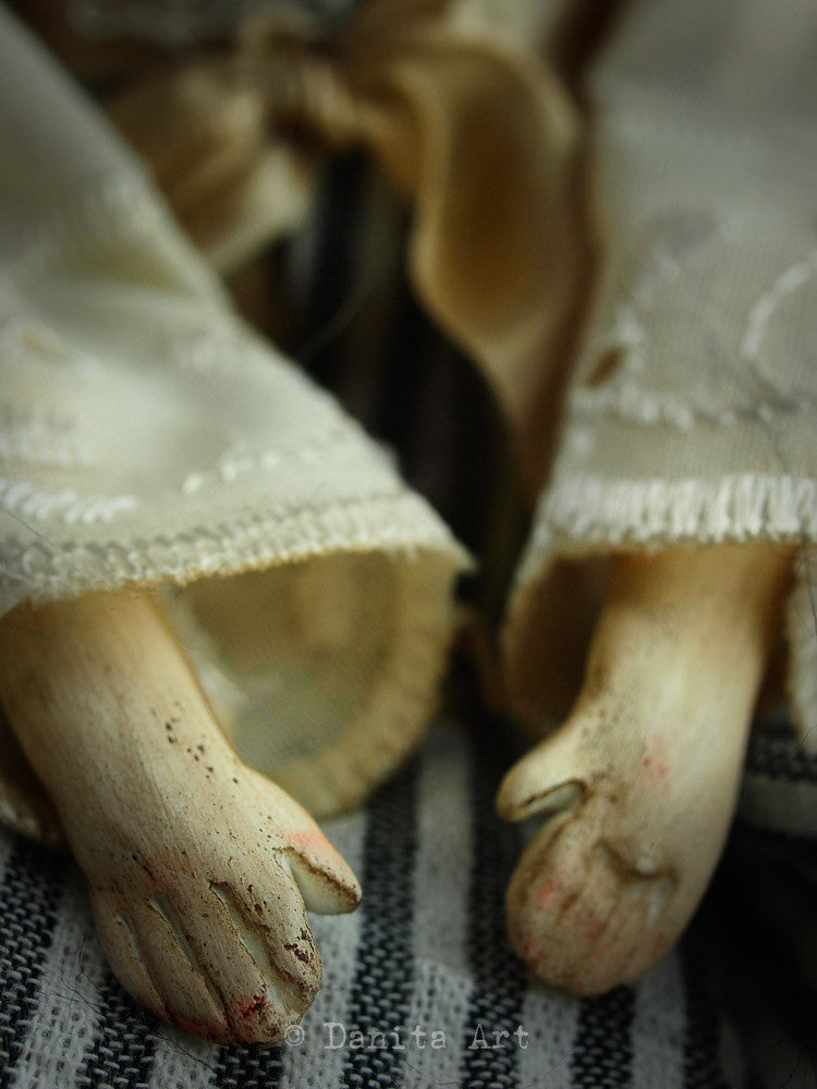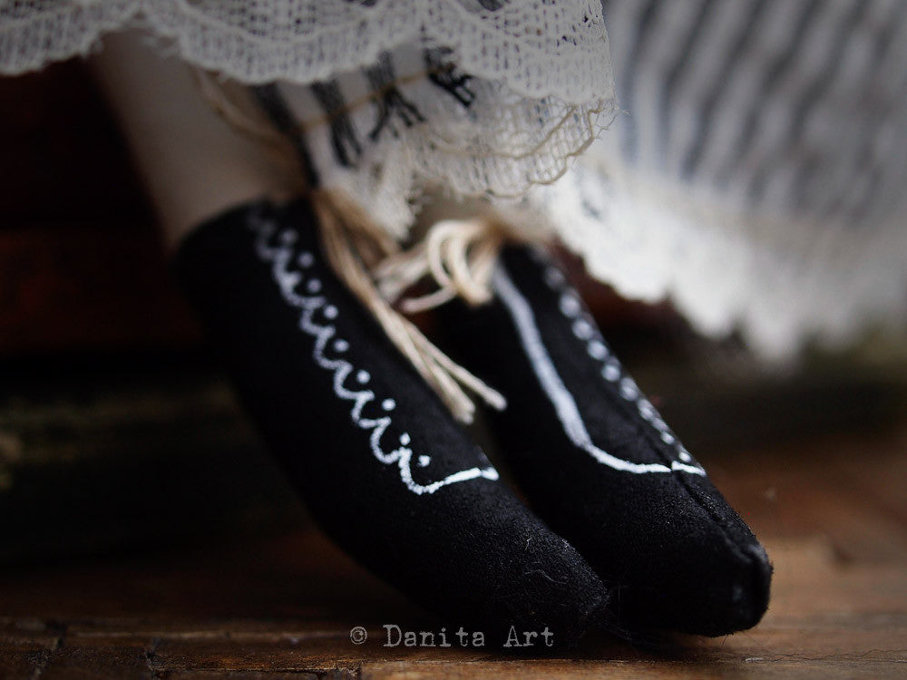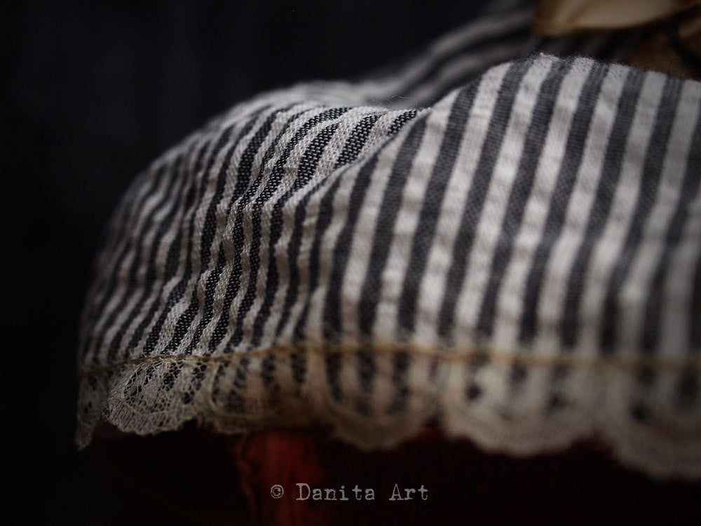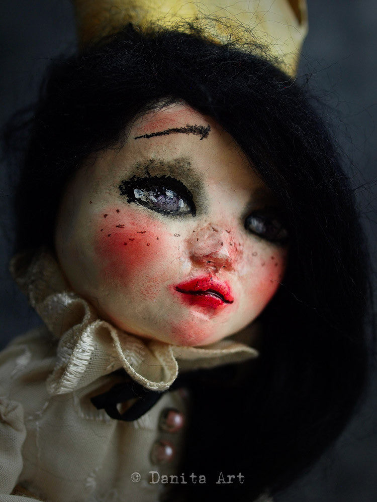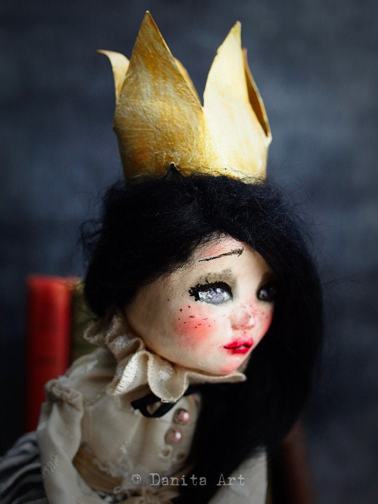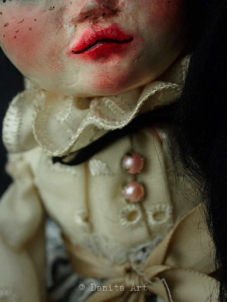 Each of my dolls a unique creation, they have a little bit on me in them. Sometimes my emotions, sometimes my looks but always a little piece of my life goes with them. You are adopting not only a beautiful doll, but a sliver of time in the life of an artist.