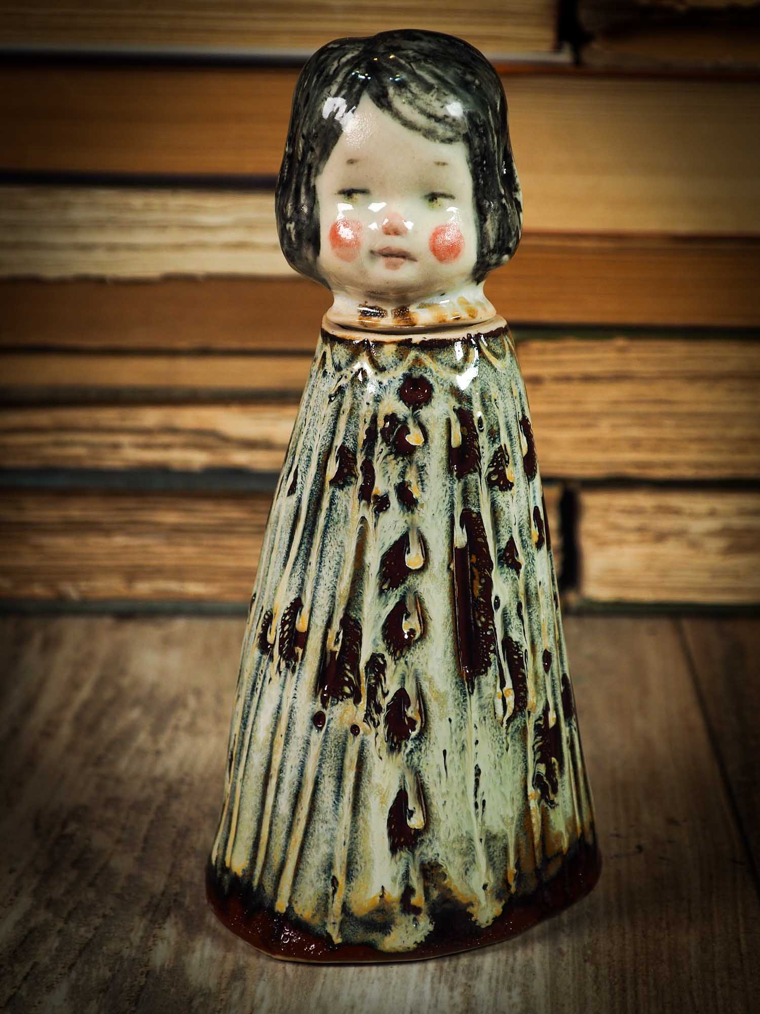Her head acts as a stopper, in case you'd like to keep nice hidden little treasures inside her. I keep my wedding ring inside and other very dear and personal items inside one just like her on my bedroom.