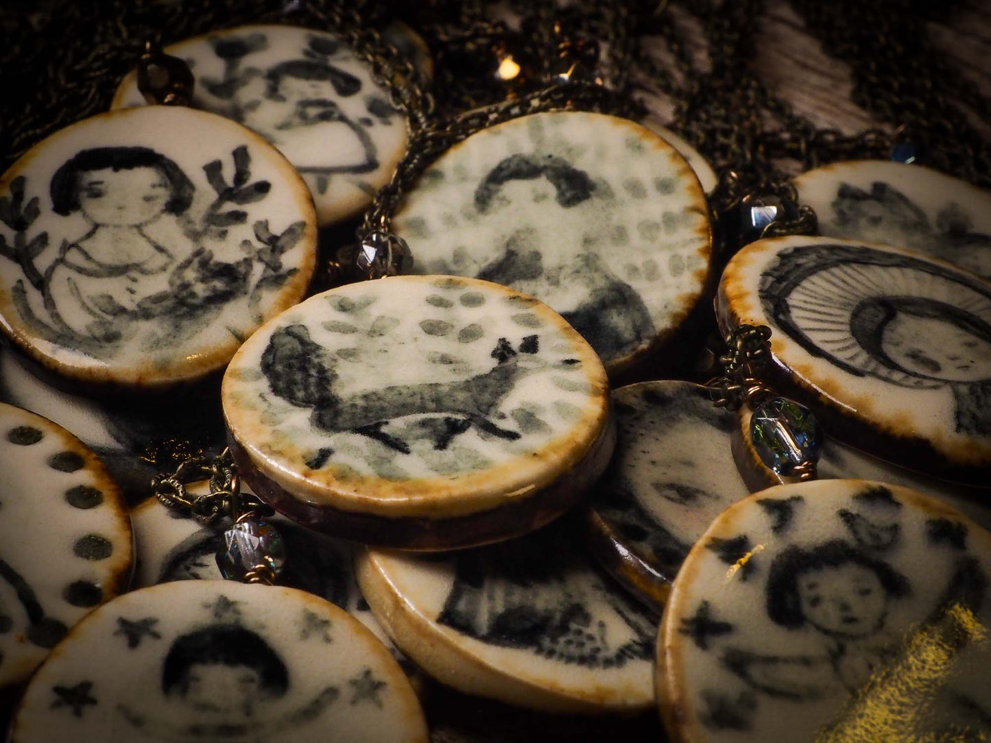 I had this feeling in mind when I sat down and created each one of the pendants on my ceramic jewelry collection. I want that when see it for the first time, you connect to a warm, special memory from your past… A special walk in the forest, the scent of a favorite meal, or a happy day spent with a loved one.
