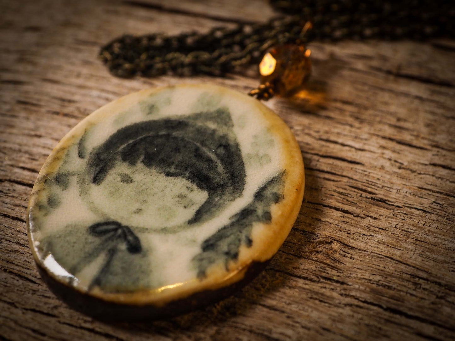 You too can imbue your necklace with the magic of your memories, so that when you wear it again, I the beautiful hand painted image on it reminds you of what drew you to it the first time you saw it, and that it lingers with you as long as you wear it.