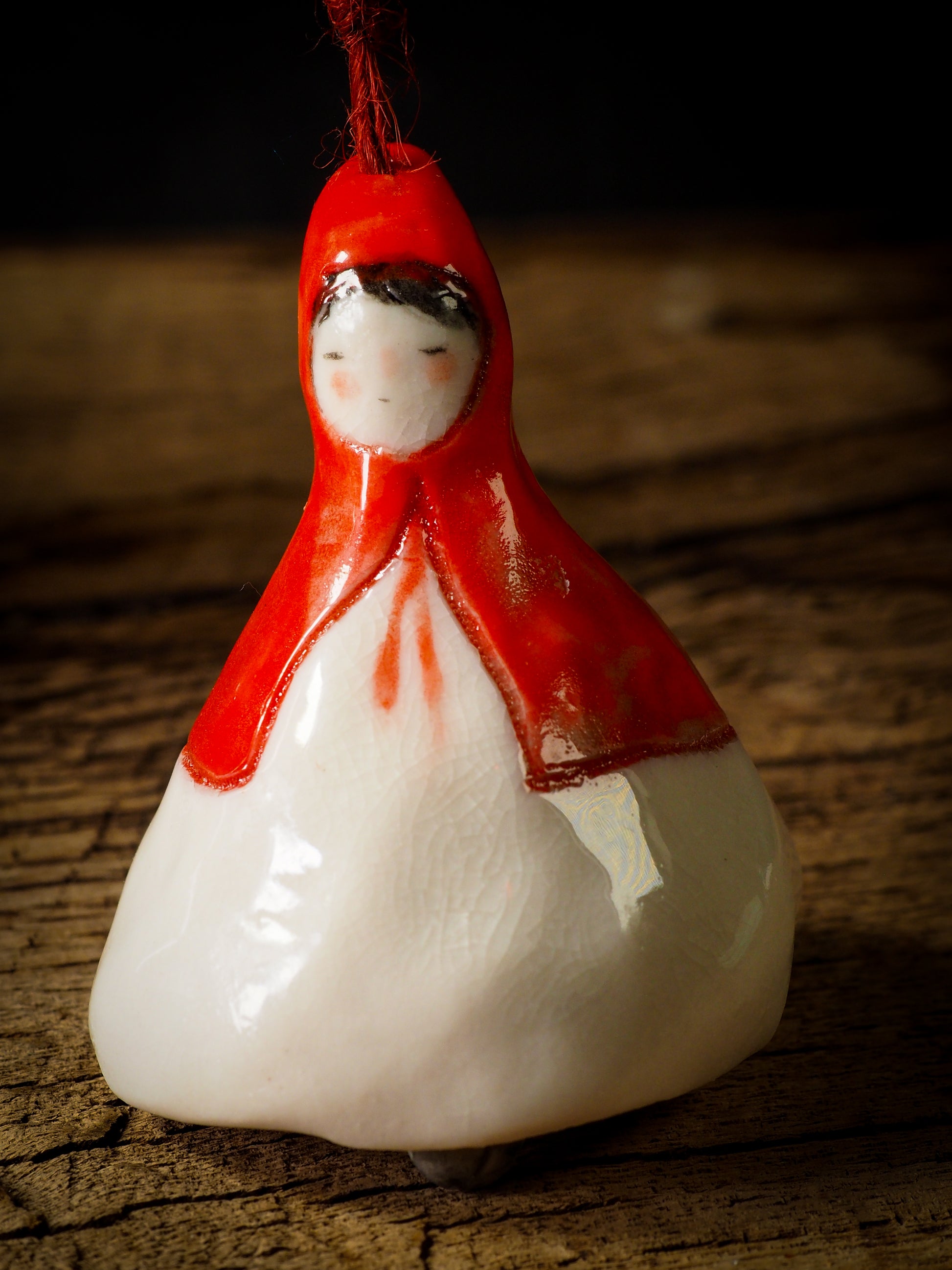 This is an original handmade fire glazed porcelain ceramic Christmas tree ornament by Danita Art.