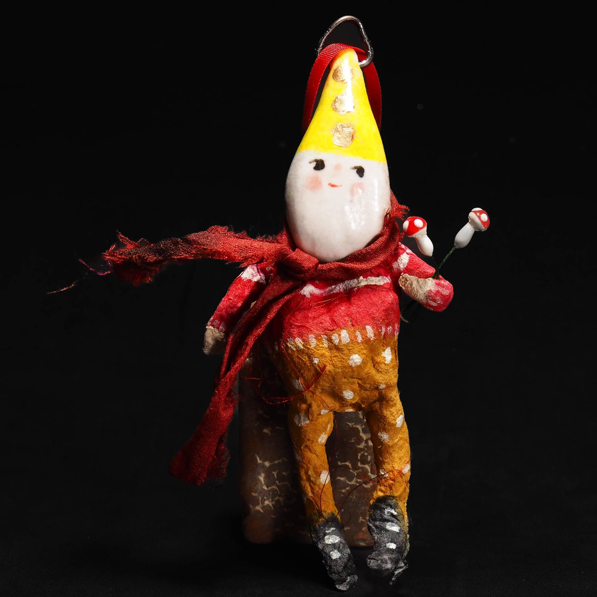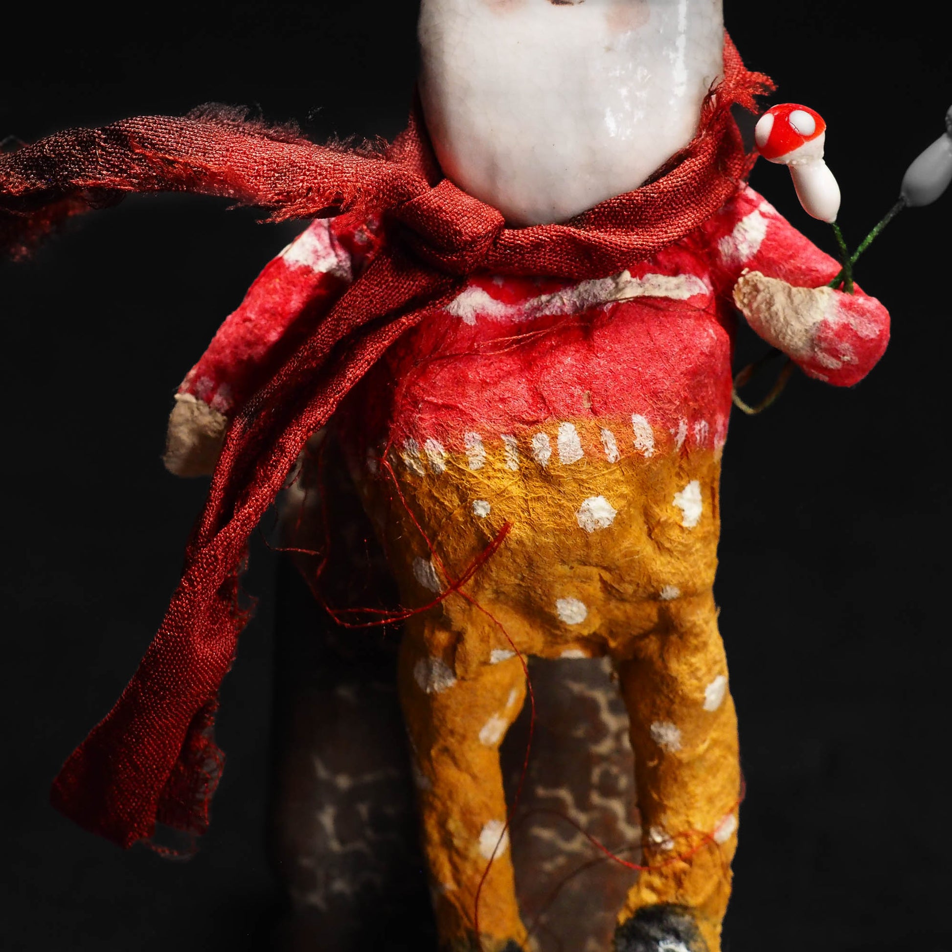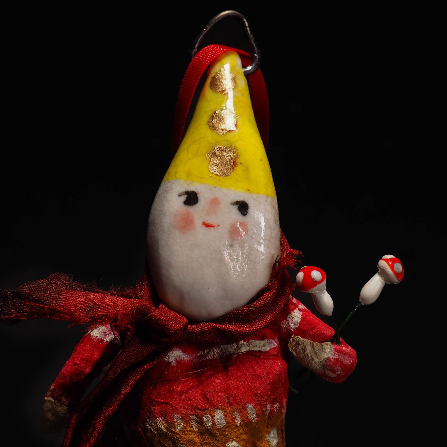 This is an adorable spun cotton and porcelain handmade Christmas tree ornament by Idania Salcido, the artist behind Danita Art.
